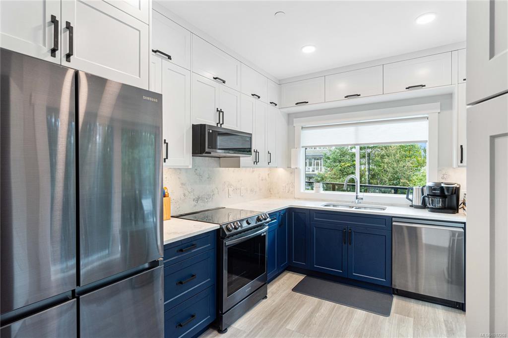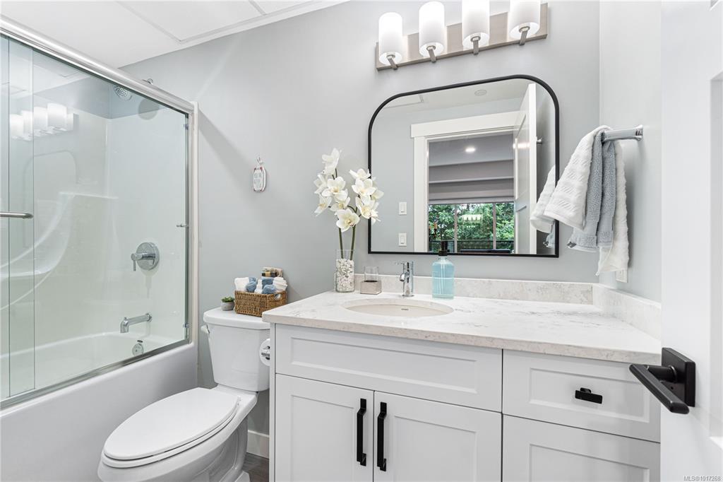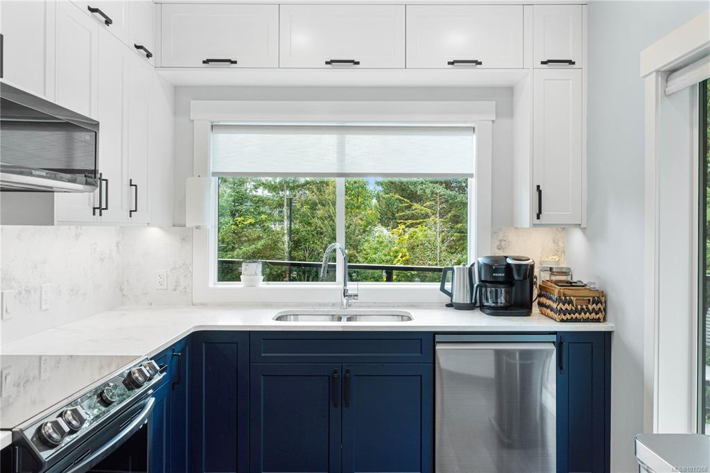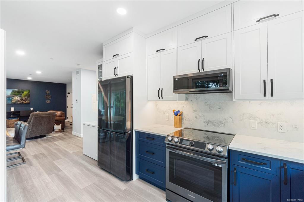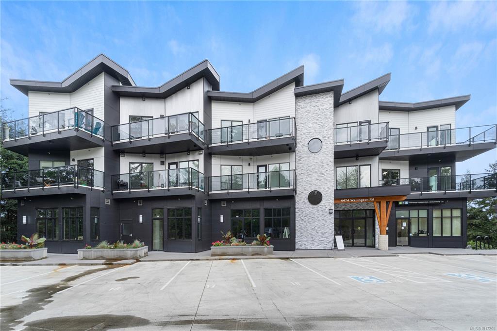 Refined and modern living awaits in this bright and spacious North Nanaimo condo. With only 16 residential units in the building, take pride in having a small footprint and ease of access. This large 1 bed, 1 bath end unit is complete with open concept living, 9 ft ceilings and expansive windows throughout, allowing ample natural lighting. This unit is unique in how much outdoor deck space is offered; with nearly 240 sq ft of overall outdoor space sprawling over 2 balconies wrapping around the unit, backing...