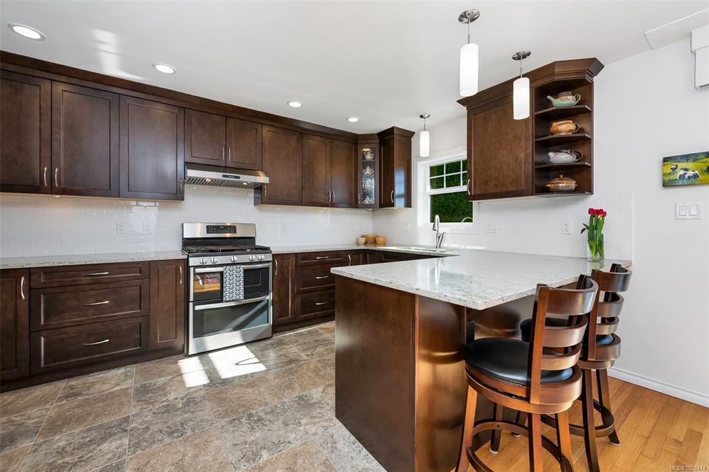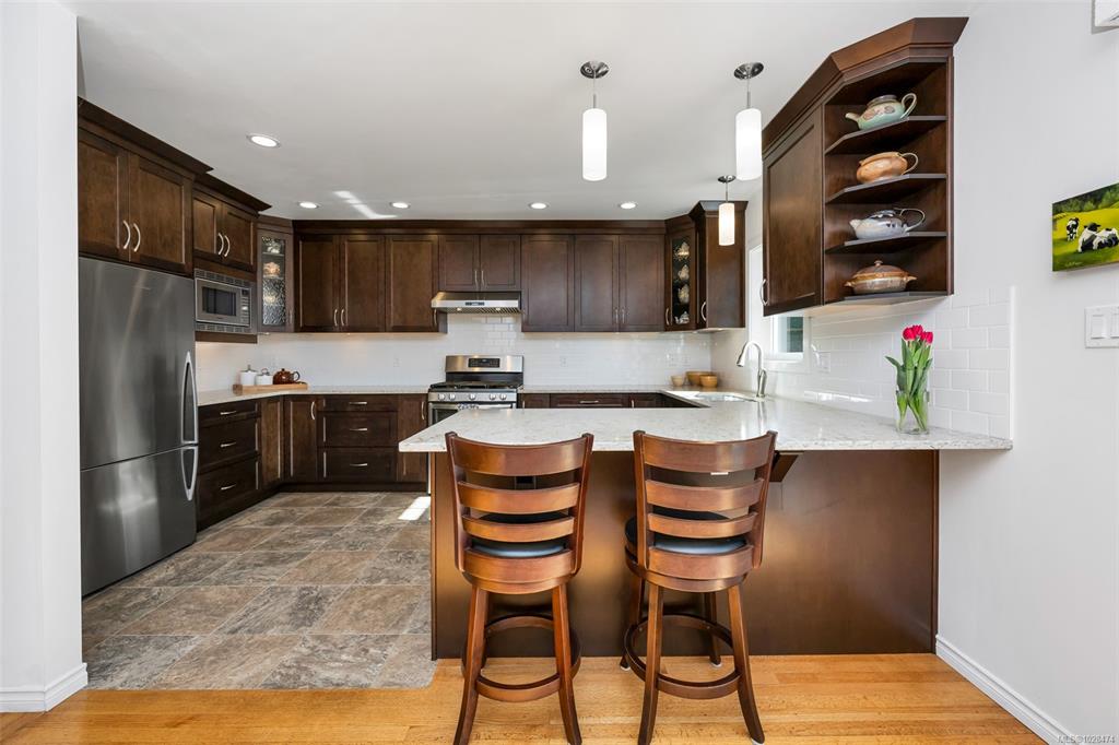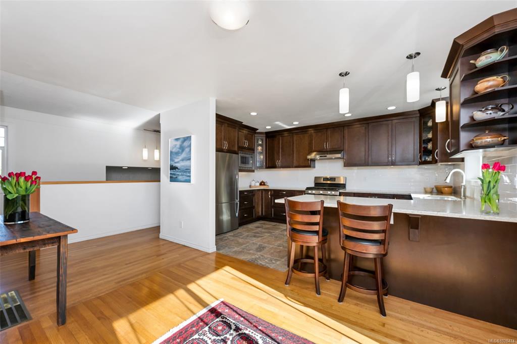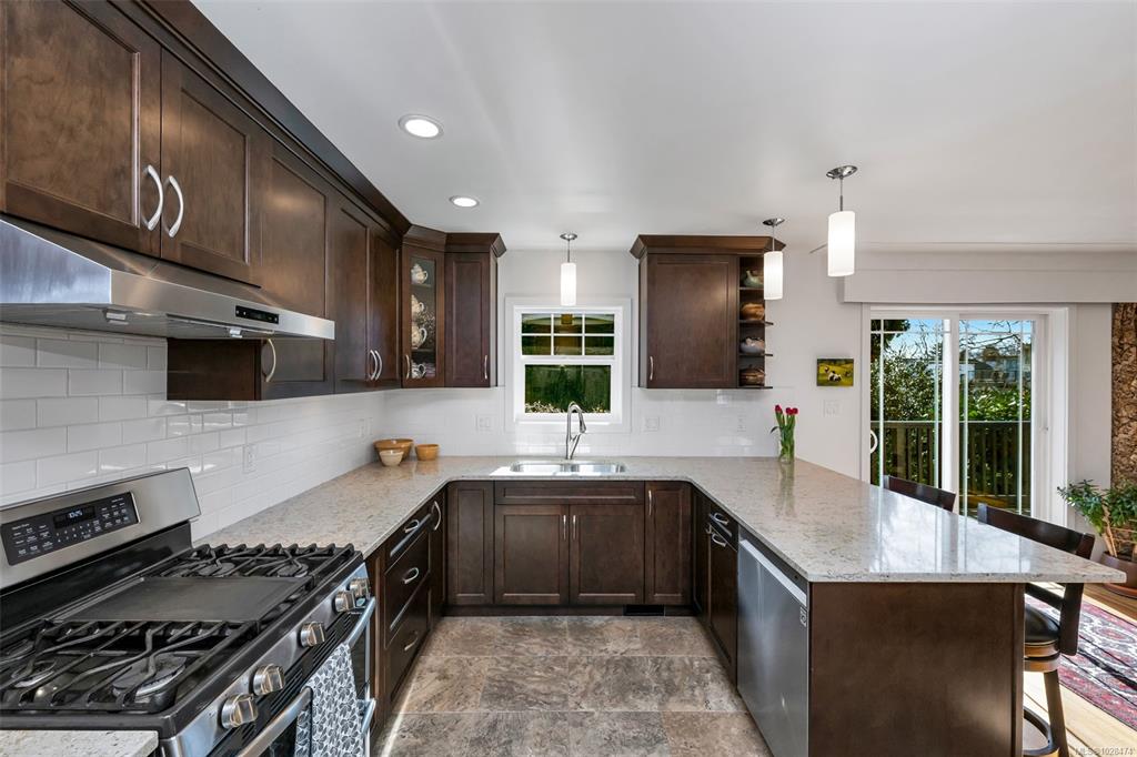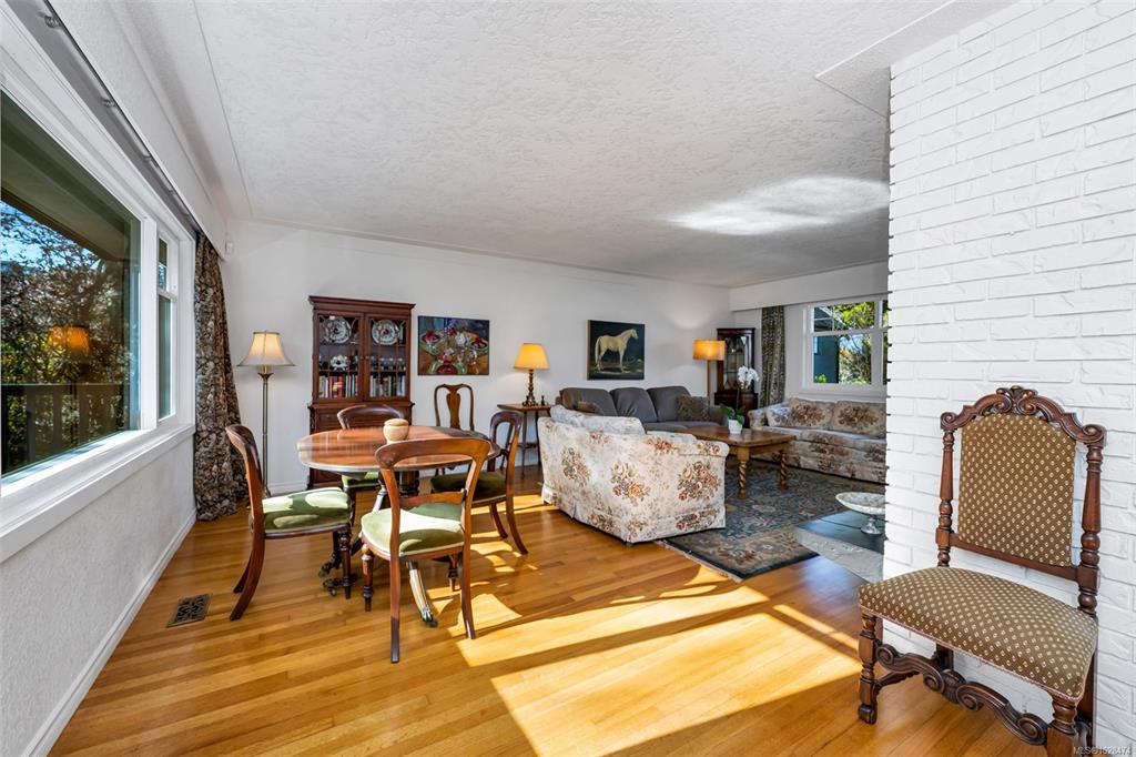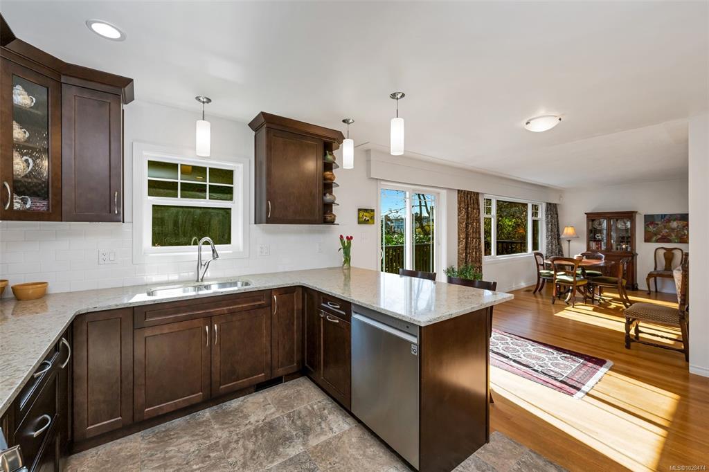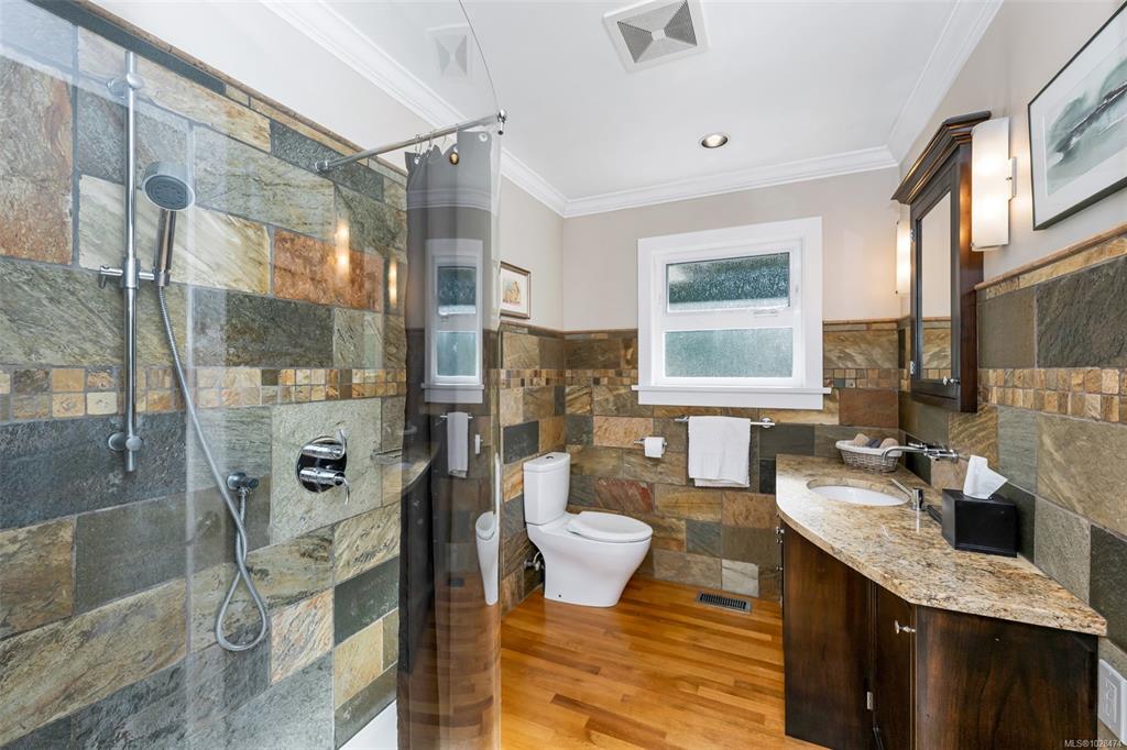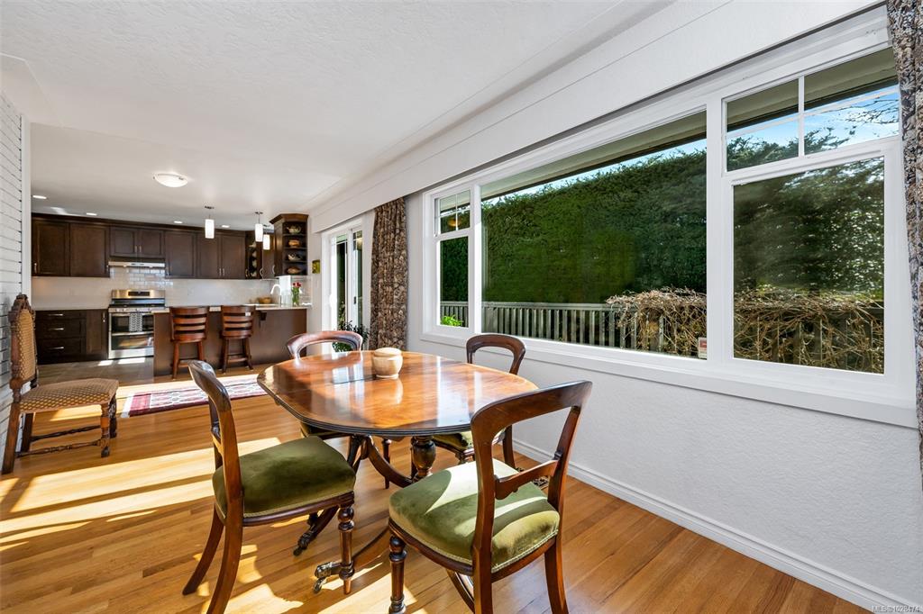 Bright and Sunny Oak Bay five bedroom family home steps from McNeill Bay! Its set back from the road so its quiet and private as well, and the yard is a gardeners delight. The main level with oak floors throughout, offers three comfortable bedrooms, and is designed for entertaining with a spacious living room (with gas fireplace), dining area, and chef’s kitchen (with SS appliances) that opens onto a large deck and private backyard. The primary bedroom (with walk in closet and 2 piece bathroom), two additio...