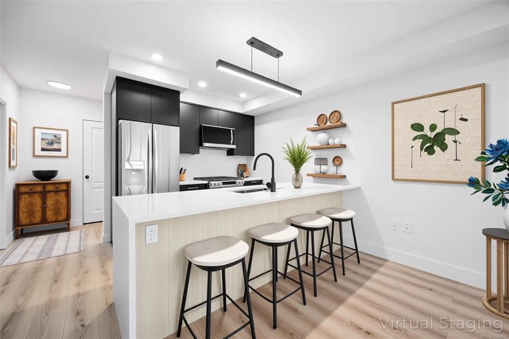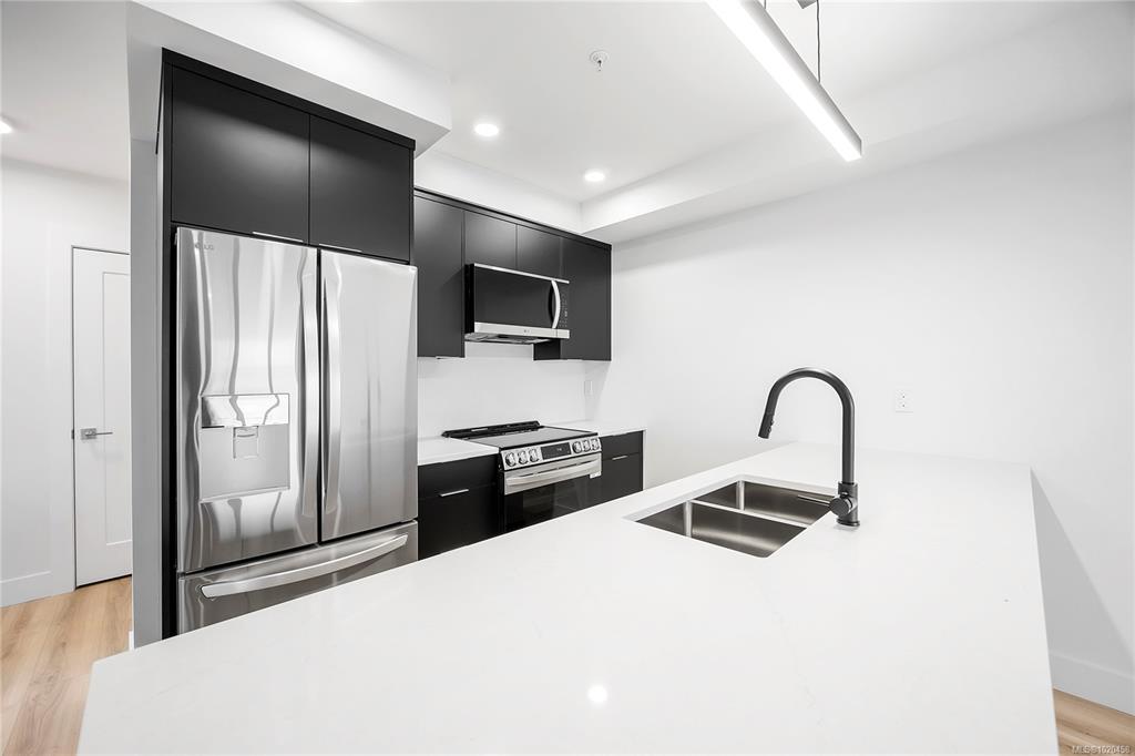 Brand new, never lived in, and best of all—no GST. Welcome to Lumina, one of Nanaimo’s newest modern residential communities. This top-floor corner suite offers stunning ocean views, two bedrooms, two bathrooms, and a bright open-concept layout with high-end finishings throughout. The floor plan is perfect for working professionals or young families who want style, convenience, and low monthly costs—the strata fee is only $222 per month. Bring your pet along, maybe use the second bedroom as a home office or...
