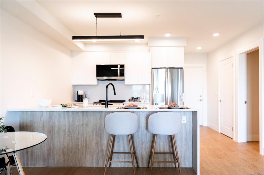 Welcome to Lumina, in the heart of Nanaimo’s Harbourview District — a Principal Property community where modern living meets coastal charm. Just steps from the harbourfront, seawall, cafés, shops, parks, and the Hullo Ferries, Lumina places you at the center of a vibrant, evolving neighborhood. This lovely residence offers a refined blend of style and comfort, featuring bright open-concept living, high-end finishes, and a spacious balcony with sweeping city and harbour views. Every element — from the quartz...