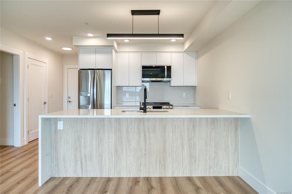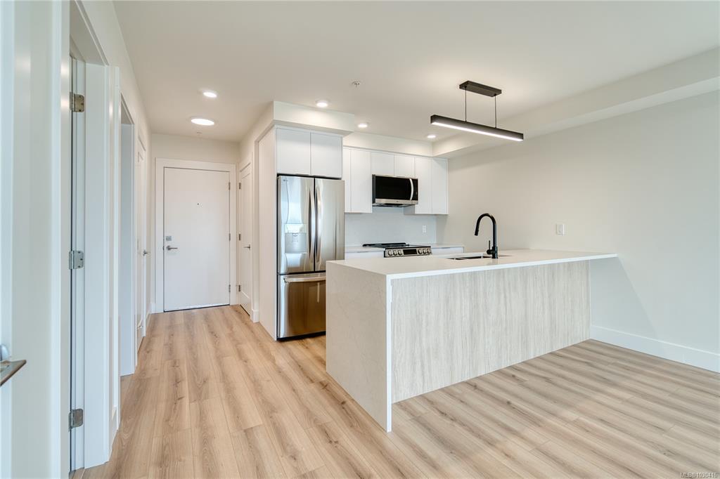 Welcome to Lumina in Harborview District, another principal property community in the heart of downtown Nanaimo, where city living meets coastal charm. Steps from the harbourfront, seawall, cafés, shops, parks, and Hullo Ferries, Lumina places you in the center of a growing, evolving district. Enjoy your mornings on the rooftop patio surrounded by lush greenspace and expansive ocean views. This beautifully designed 2-bedroom, 1-bath home features bright, open living with views of the harbour, city, and moun...