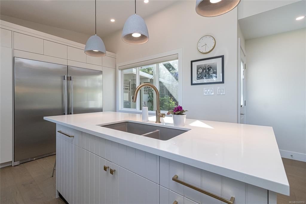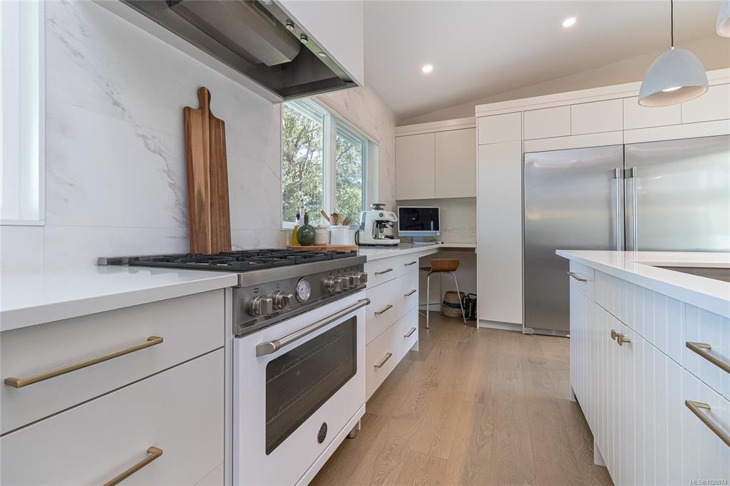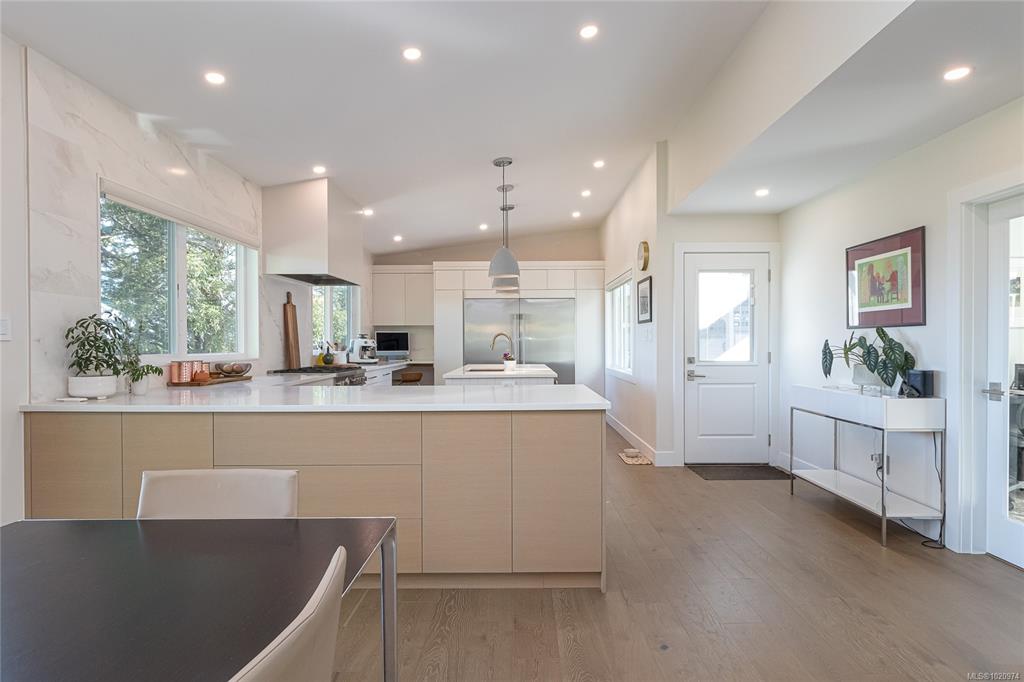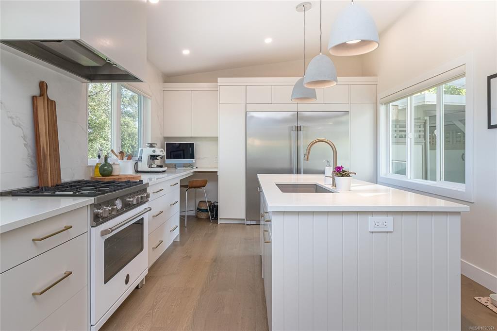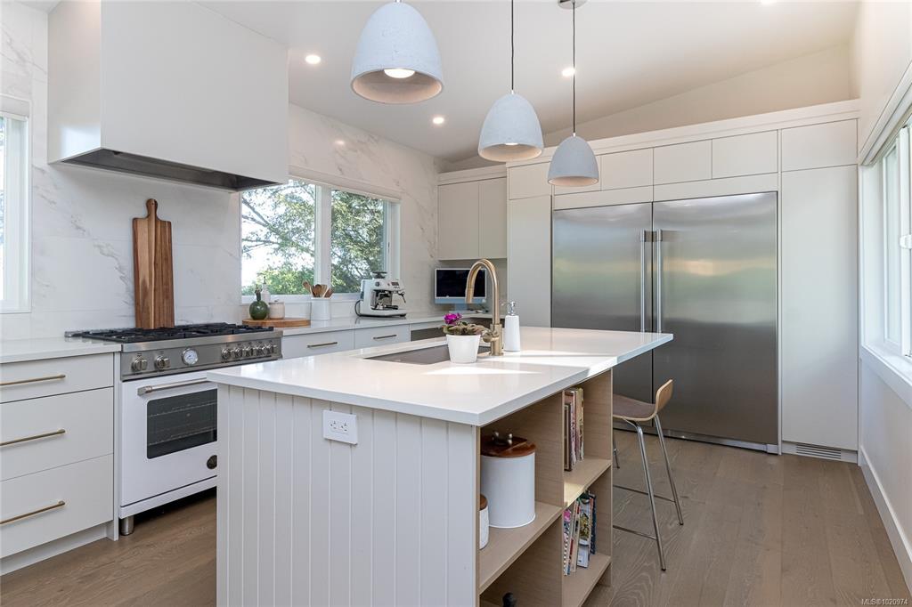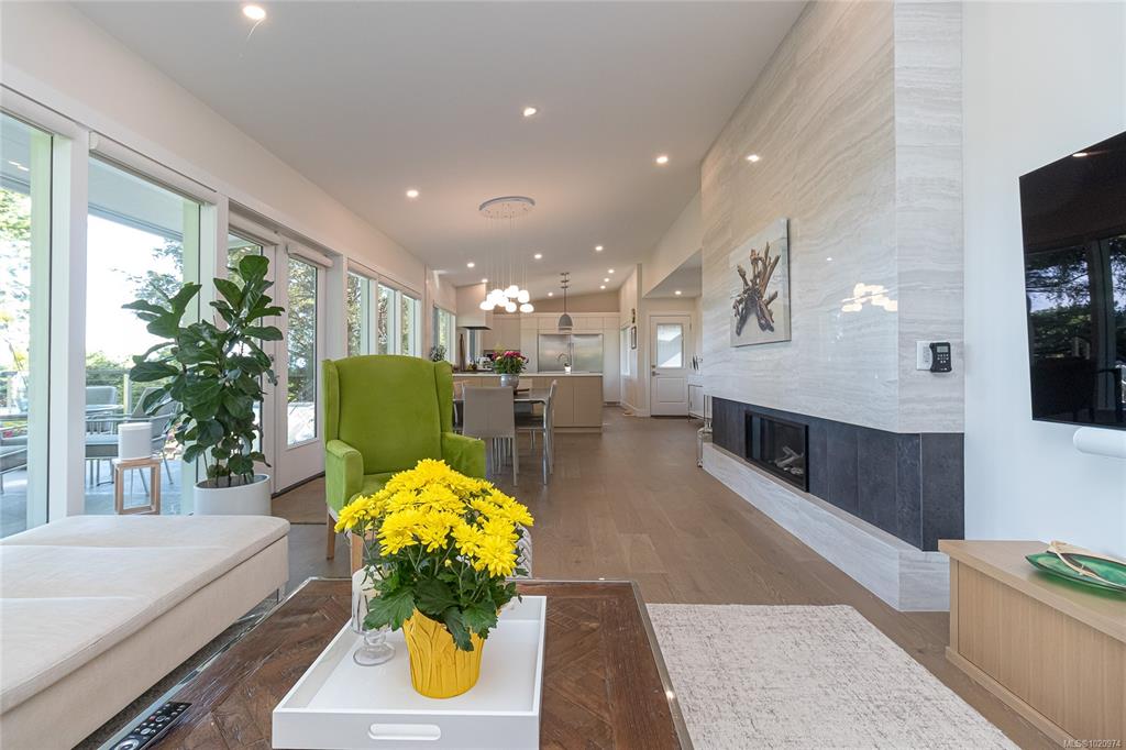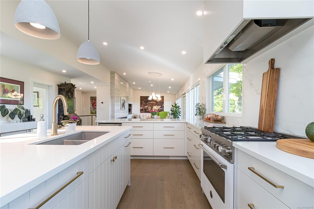 Welcome Home to Coastal Elegance – nestled on a beautiful (over 17,000sqft) lot! Step into this timelessly renovated home, designed by renowned Jenny Martin Design. Just mins from the beach, this gorgeous home provides for a single level living lifestyle with an open-concept layout that flows seamlessly onto a large deck overlooking your gorgeous yard & Views of Mt. Doug, the ocean down to Sidney & Cordova Bay. With a gourmet kitchen you'll be cooking all the time, high-end appliances, ample cabinetry, larg...