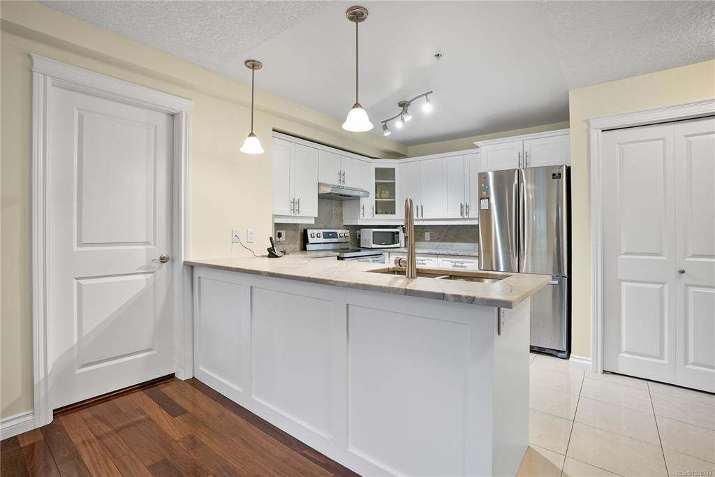 Welcome to Viewmont Heights in Royal Oak Village! This 2 bed/2 bth patio-style style ground floor unit is a 55+ complex (2008) located in the popular area of Saanich. Near Broadmead village & close to all transportation yet tucked away from traffic with shops, recreation, medical services, groceries & amazing restaurants only a short walk away. This well-kept, UPDATED home is in great condition with heated tile flrs and has an open kitchen & living rm, making it a very spacious floorpan. Upgraded walk in st...