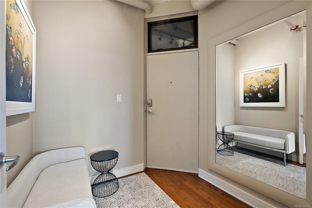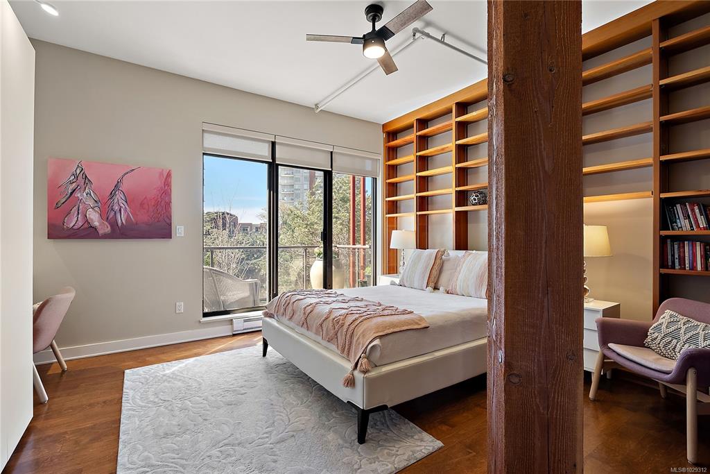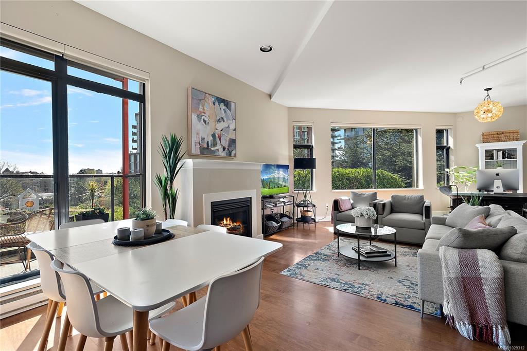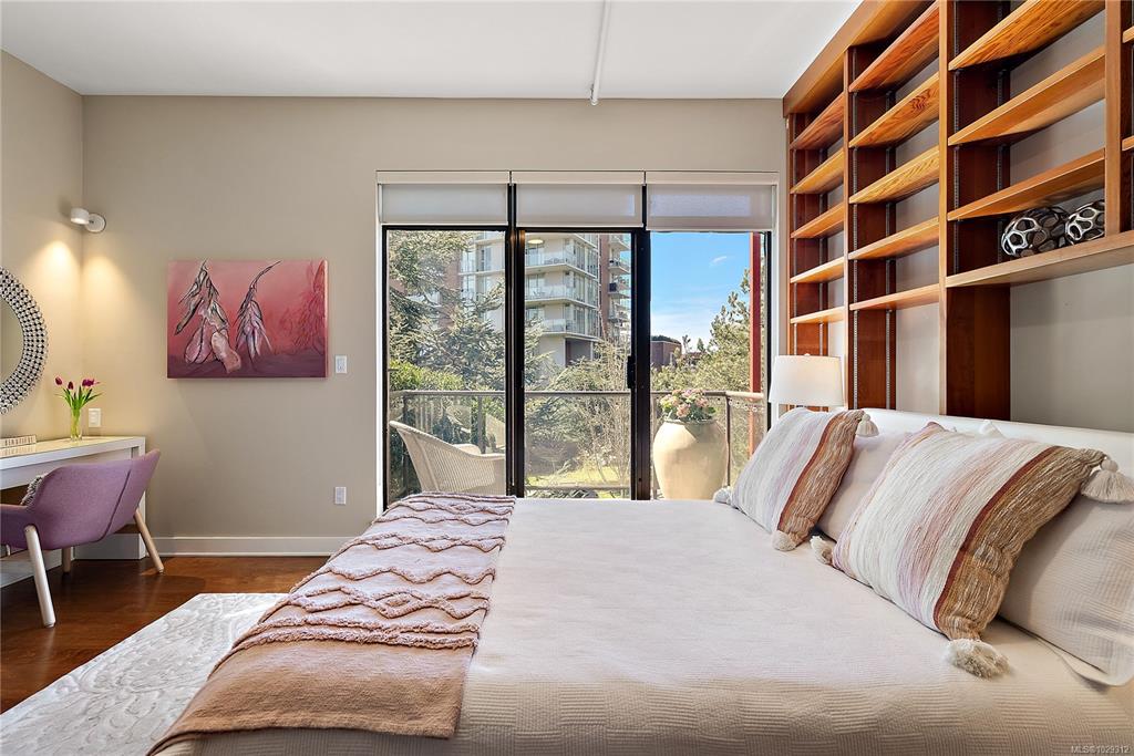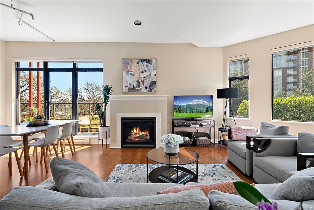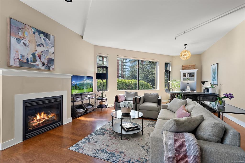 Welcome to The Edge - an exclusive boutique building in trendy Vic West. This fully renovated NY-style loft offers refined 1-level living w/ soaring 10' ceilings, exposed fir beams & expansive windows flooding the home w/ natural light. A designer kitchen anchors the open layout, featuring soapstone counters, island w/ bar seating, new premium SS appliances & extensive custom cabinetry. The living area has gas fireplace, maple hardwood & private patio w/ gas BBQ hookup & overlooking a protected Garry Oak pa...