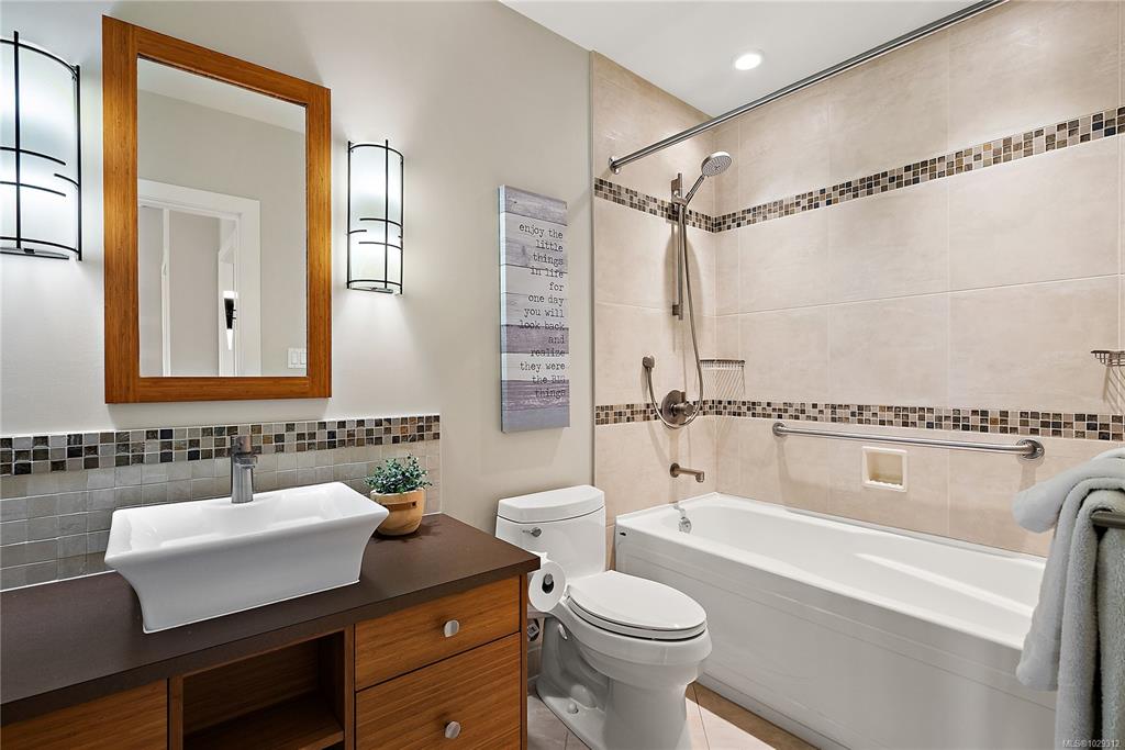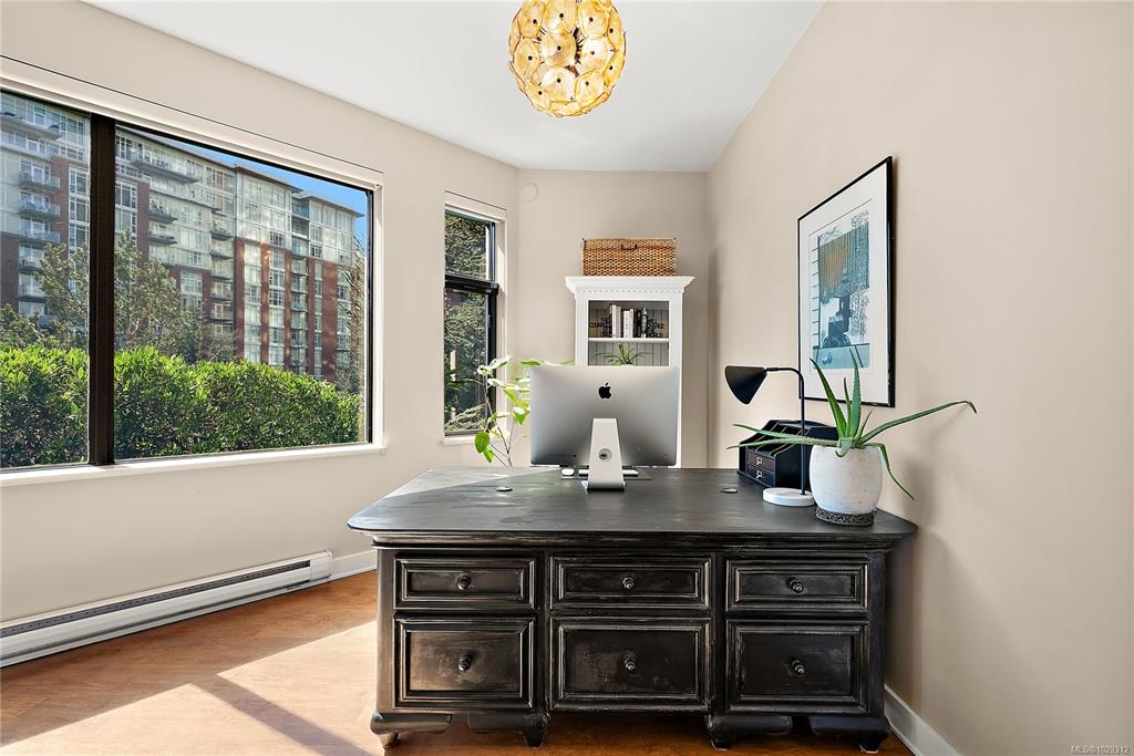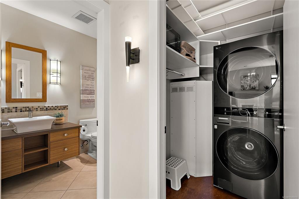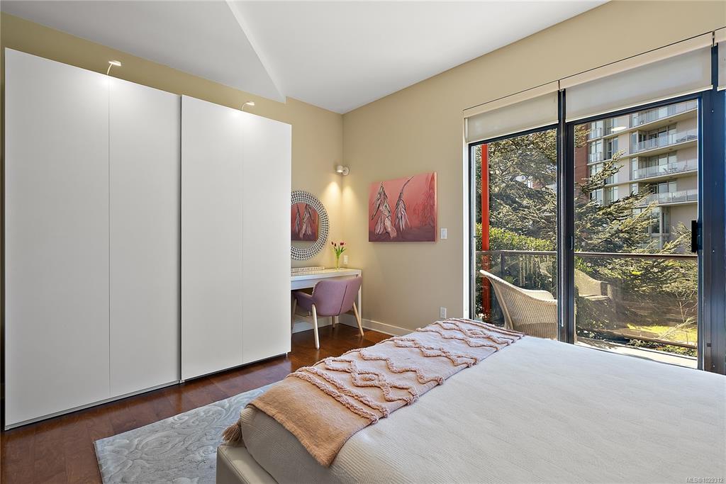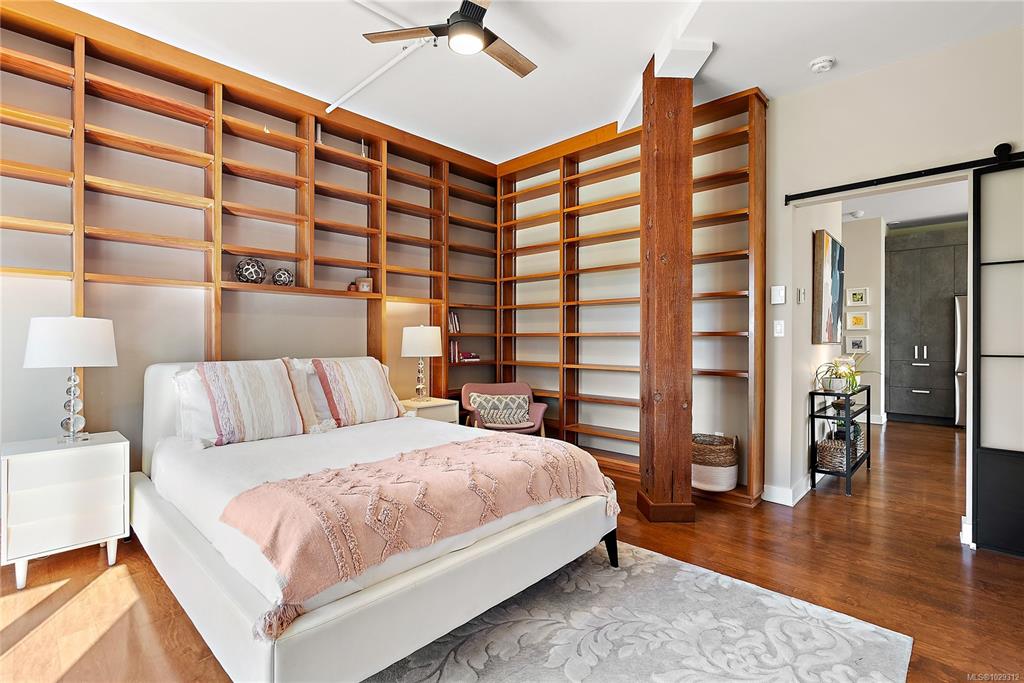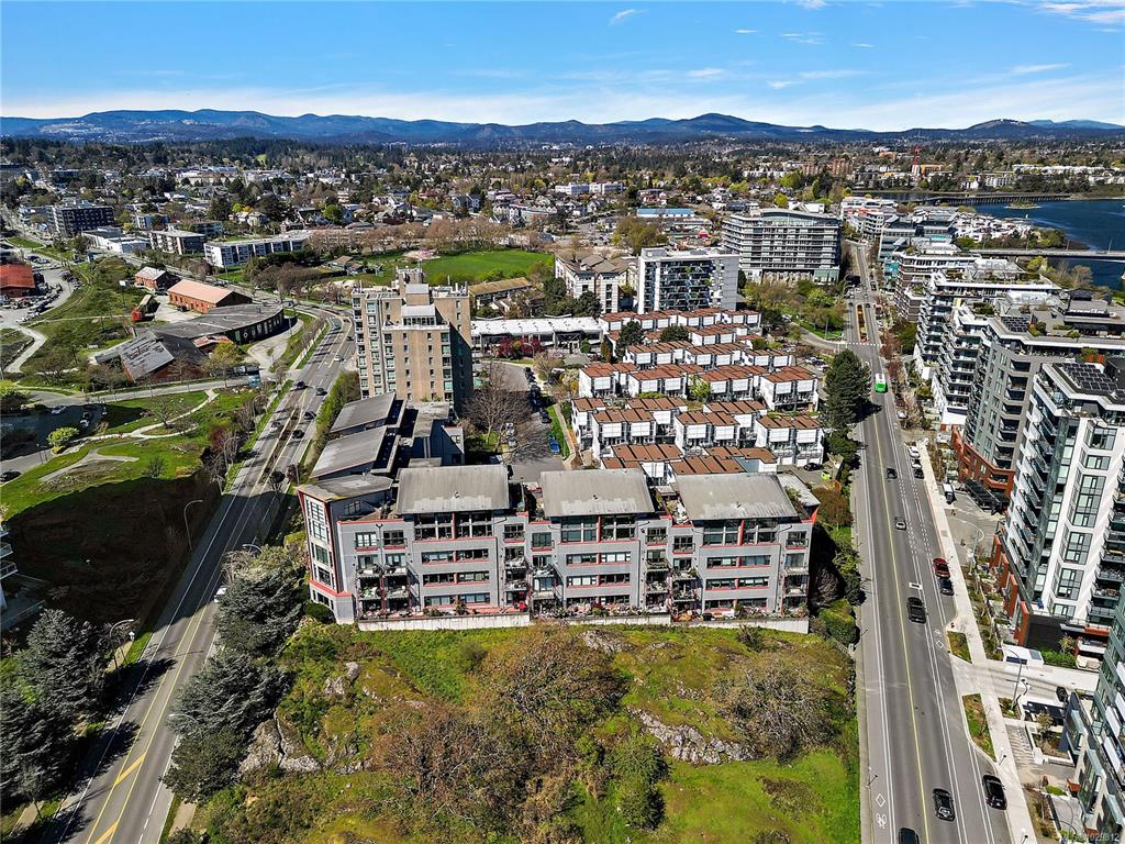 Welcome to The Edge - an exclusive boutique building in trendy Vic West. This fully renovated NY-style loft offers refined 1-level living w/ soaring 10' ceilings, exposed fir beams & expansive windows flooding the home w/ natural light. A designer kitchen anchors the open layout, featuring soapstone counters, island w/ bar seating, new premium SS appliances & extensive custom cabinetry. The living area has gas fireplace, maple hardwood & private patio w/ gas BBQ hookup & overlooking a protected Garry Oak pa...