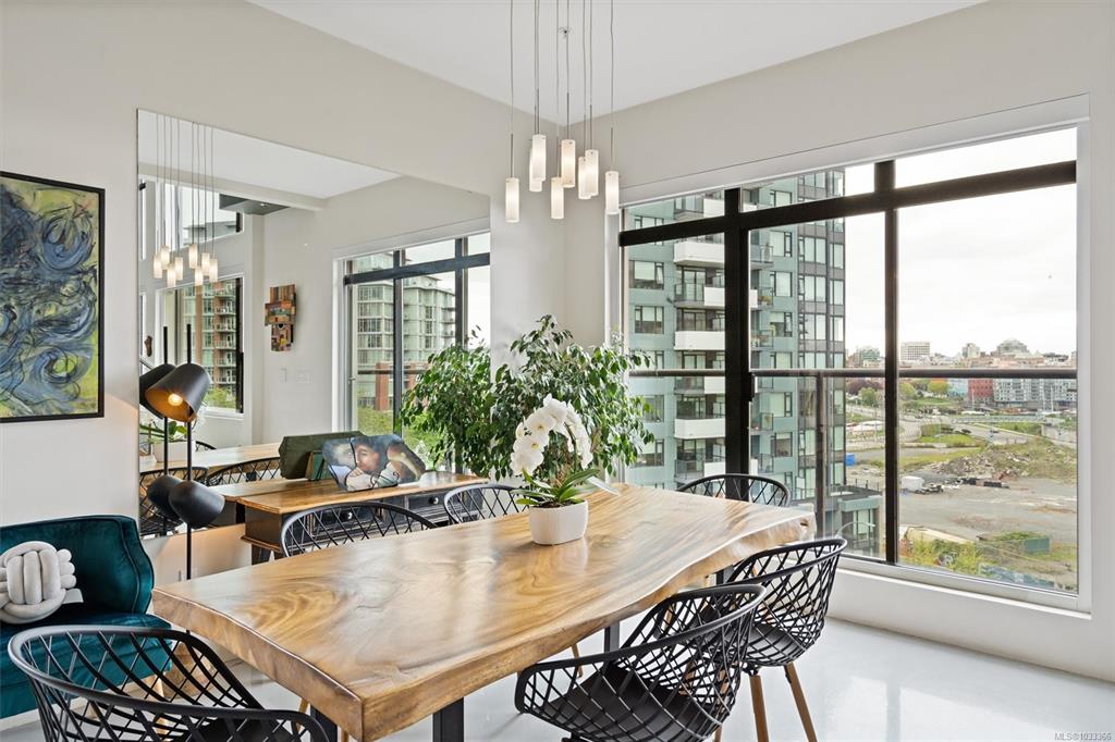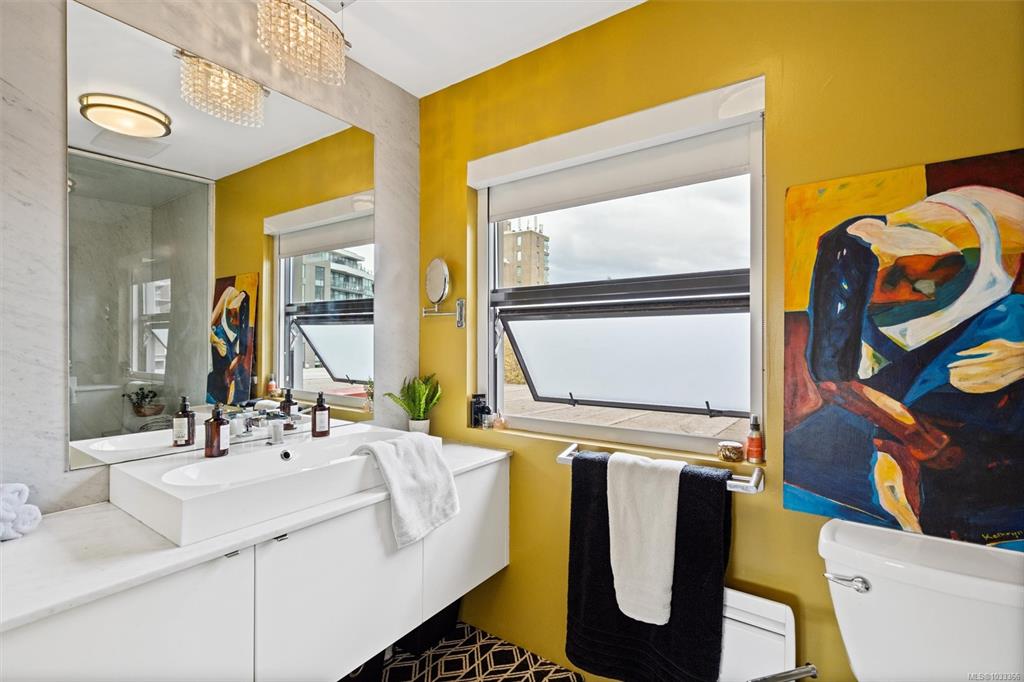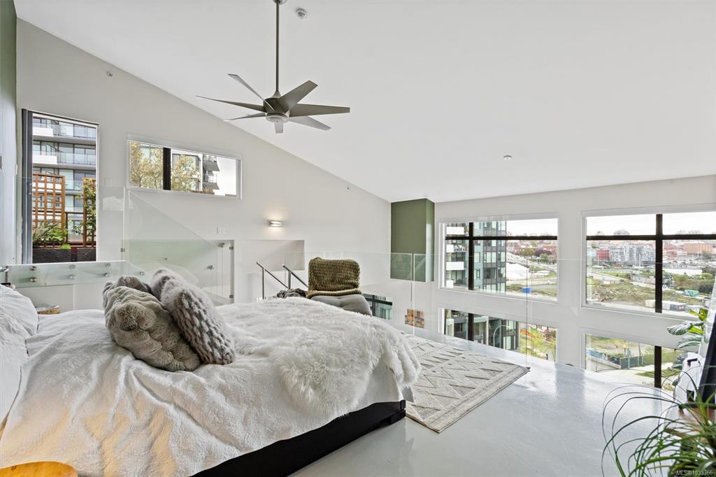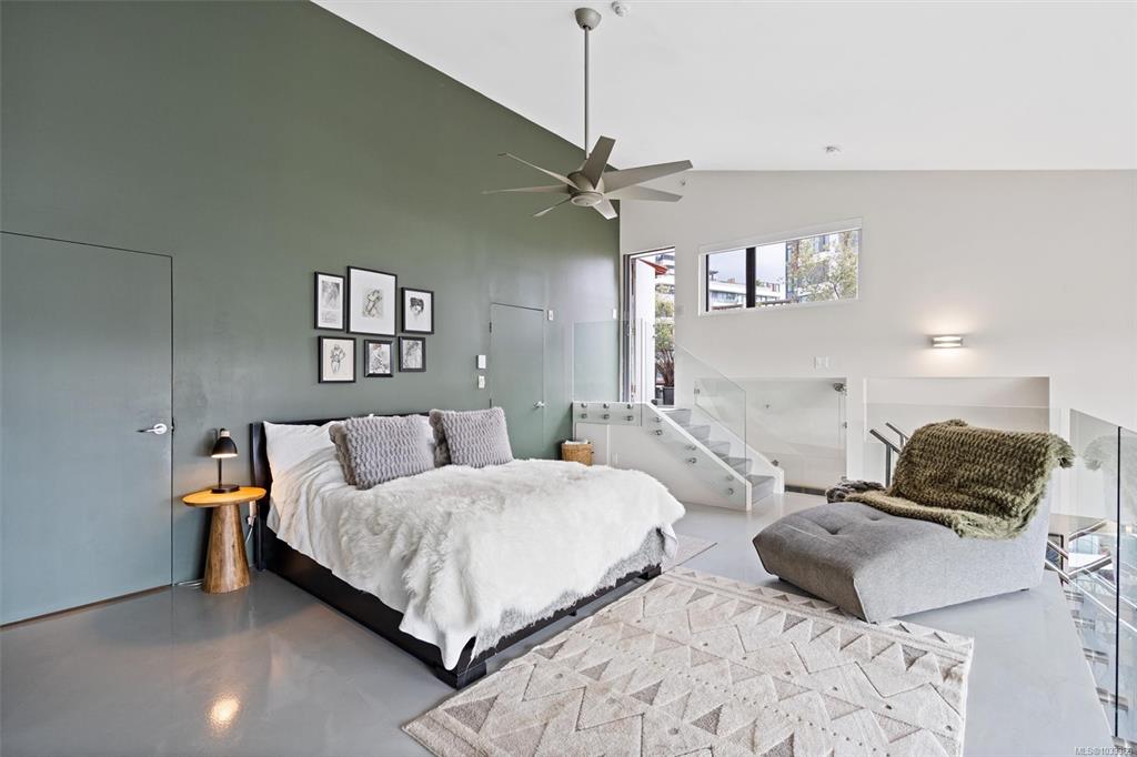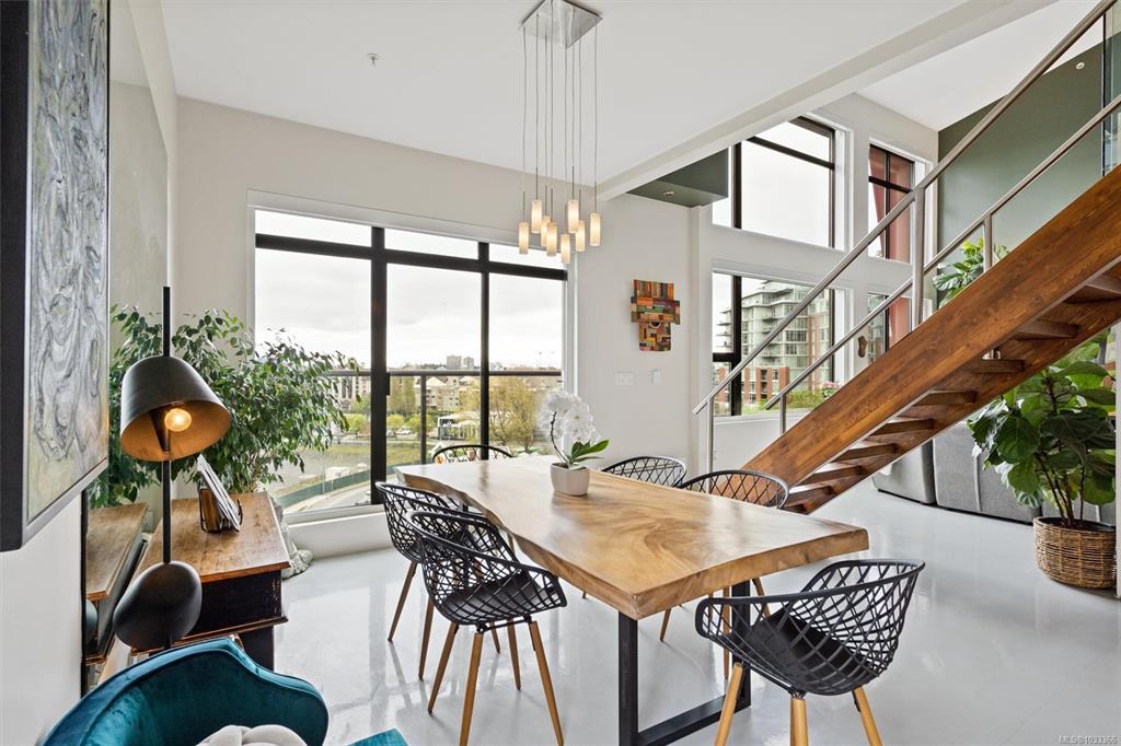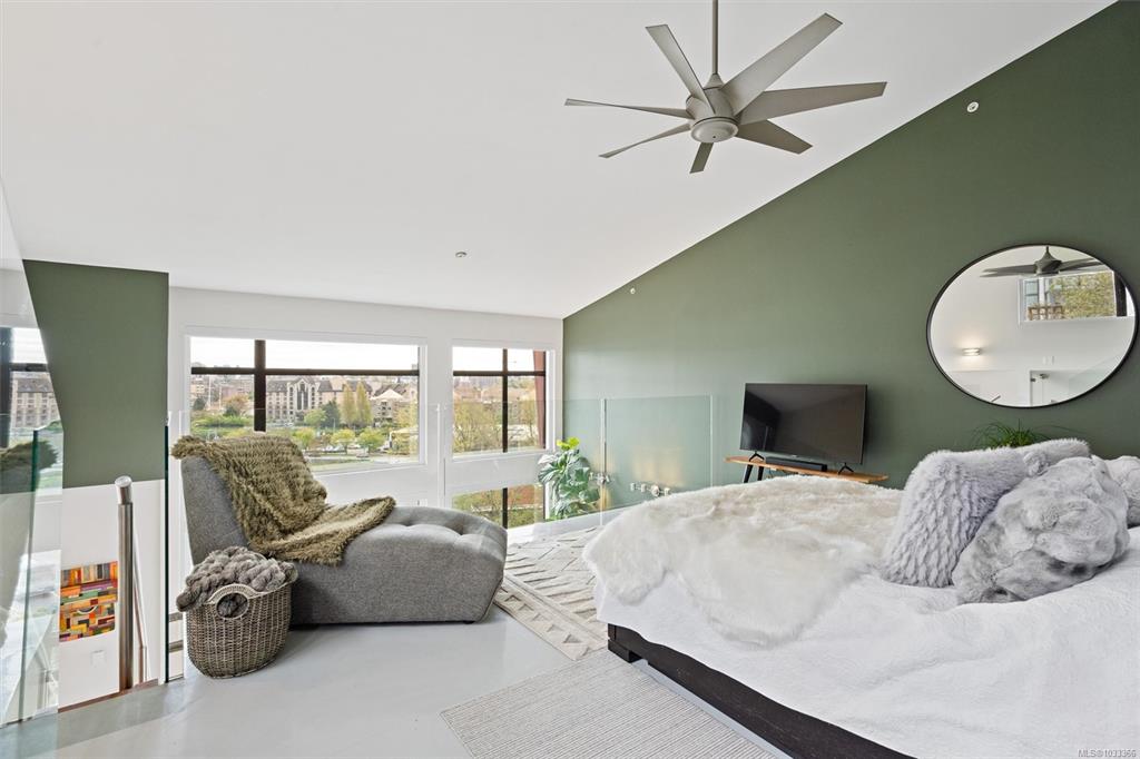 This is the kind of home that leaves a lasting impression, a stunning 2-bedroom, 2-bathroom penthouse loft located in one of Victoria's most sought-after buildings. Soaring ceilings and oversized windows fill the space with natural light, while offering spectacular views of the water, downtown skyline, and Mount Baker. The chef's kitchen is thoughtfully designed with premium finishes and appliances, perfect for quiet weeknight dinners or weekend entertaining. Upstairs, the primary suite is a genuine retreat...