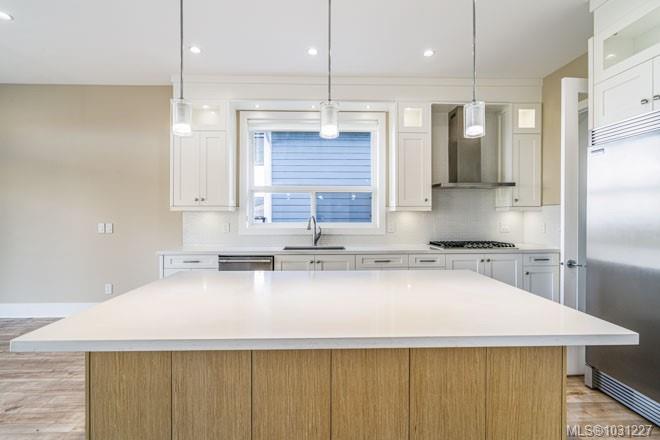 Enjoy sweeping ocean and mountain views from this new custom home in North Nanaimo. Offering 6 bedrooms and 5 bth over 3 levels, this residence showcases quality construction, high-end finishes, and multiple oceanview decks. The main floor features a spacious foyer, bright great room with high ceilings, fireplace, and 10' sliding doors opening to a large, unobstructed oceanview deck. The open-concept layout flows into the dining area and gourmet kitchen w/ custom cabinetry, granite counters, center island w...