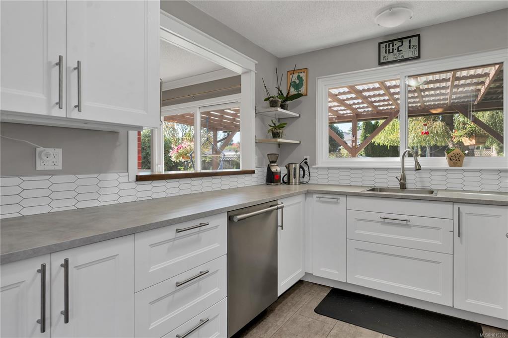 This beautifully updated 3-bedroom, 2-bathroom rancher offers comfort and style throughout. The spacious primary suite features a walk-in closet and a 2022-renovated ensuite with a tiled shower, glass door, heated floors, and a generous vanity. Large windows and a cozy woodstove brighten the inviting living room, while the adjoining family/dining area flows into the modern kitchen, featuring white cabinetry, stainless steel appliances, a tile backsplash, updated countertops, and an eating bar. Recent update...
