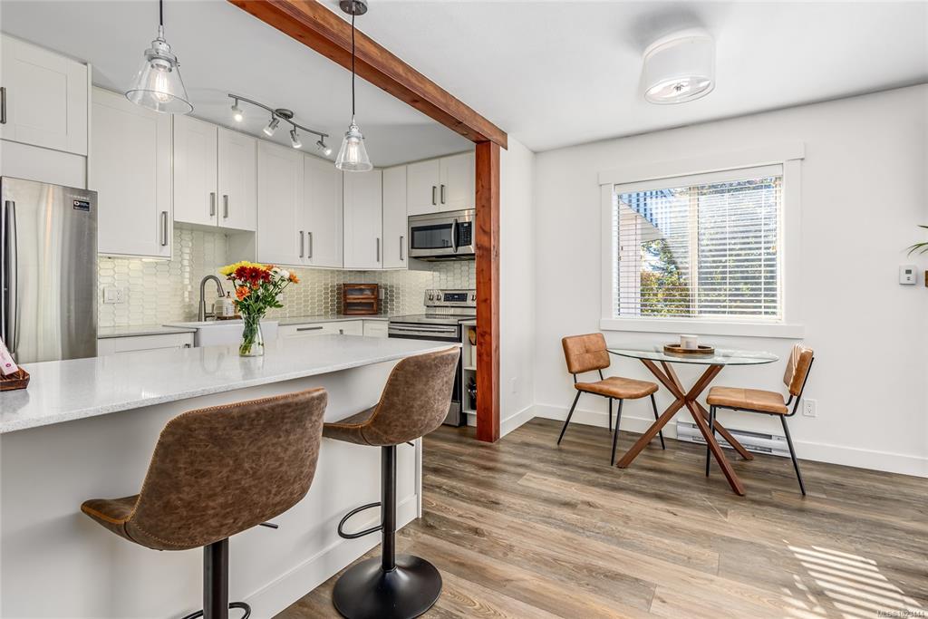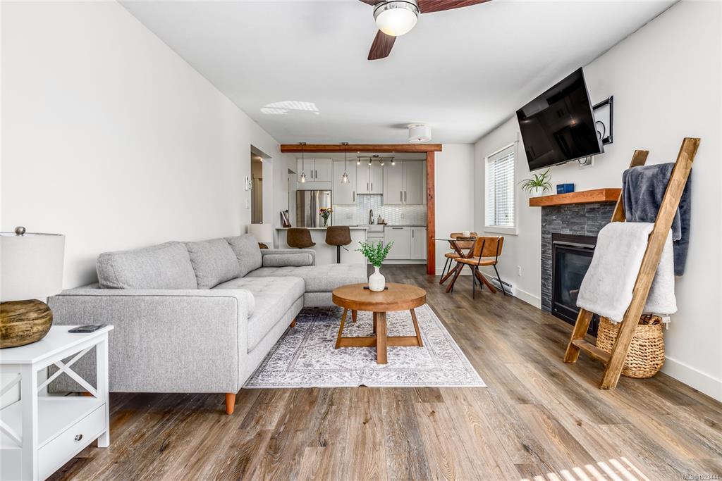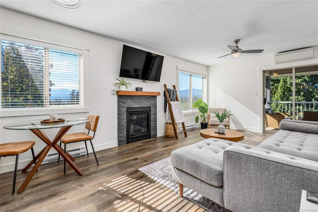 Quietly tucked into a cul-de-sac, this updated top-floor home offers privacy, mountain views, and a prime location near Sandwick Park, the hospital, and everyday amenities. Filled with natural light, the open-concept living space features a cozy gas fireplace, spacious deck, and a renovated white kitchen with quartz countertops, stainless steel appliances, and a hidden dishwasher.