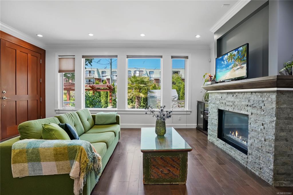 AMAZING JAMES BAY BY THE OCEAN! This modern-designed 4 Bed/4 Bath home is just steps to the ocean, and is located in one of Victoria’s premier neighbourhoods! Live the Victoria lifestyle in this iconic location—walk to Dallas Rd, Ogden Point. parks or downtown! This 2000 sq ft+ front duplex offers modern West Coast living across 3 levels. Designed by an award-winning builder, it features open-concept living rm w/cozy gas F/P, radiant in-floor heat, hardwood floors, quartz counters, on-demand hot water, and ...