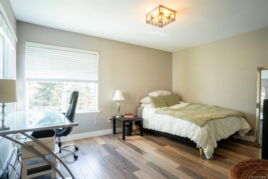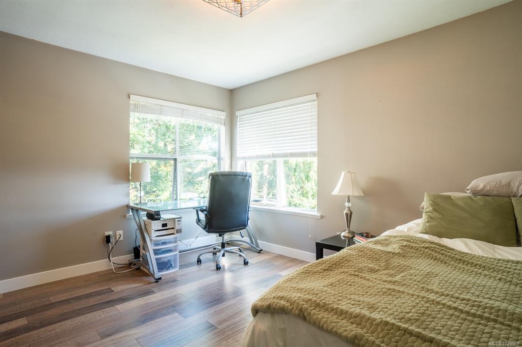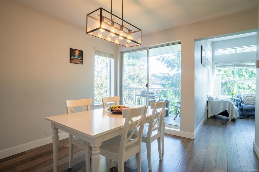 Stylish 2 bed, 2 bath condo in desirable North Nanaimo. This 964 sq ft home is close to restaurants, shopping, schools, parks, and nature trails. The open-concept layout connects kitchen, dining, and living areas for comfortable living and entertaining. The renovated kitchen features custom cabinetry and modern finishes. The bright living room offers forest views and a cozy natural gas fireplace with marble mantle. Updated flooring and light fixtures add a modern touch. The main 4-piece bathroom has quartz ...