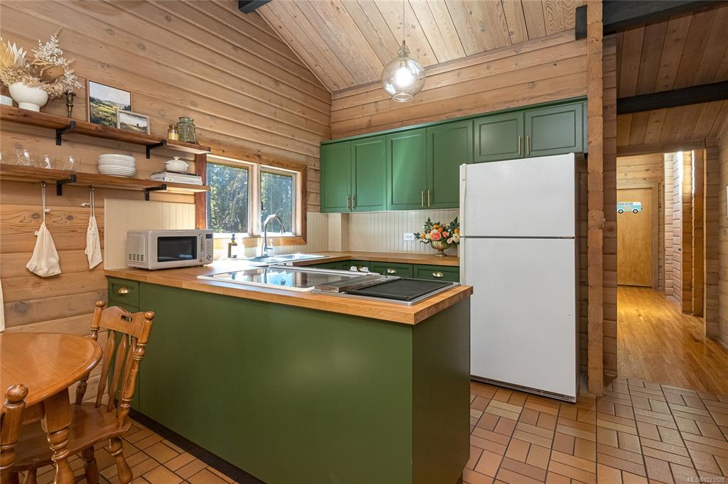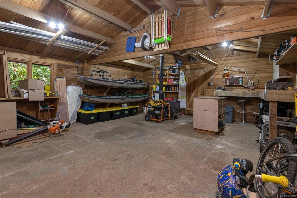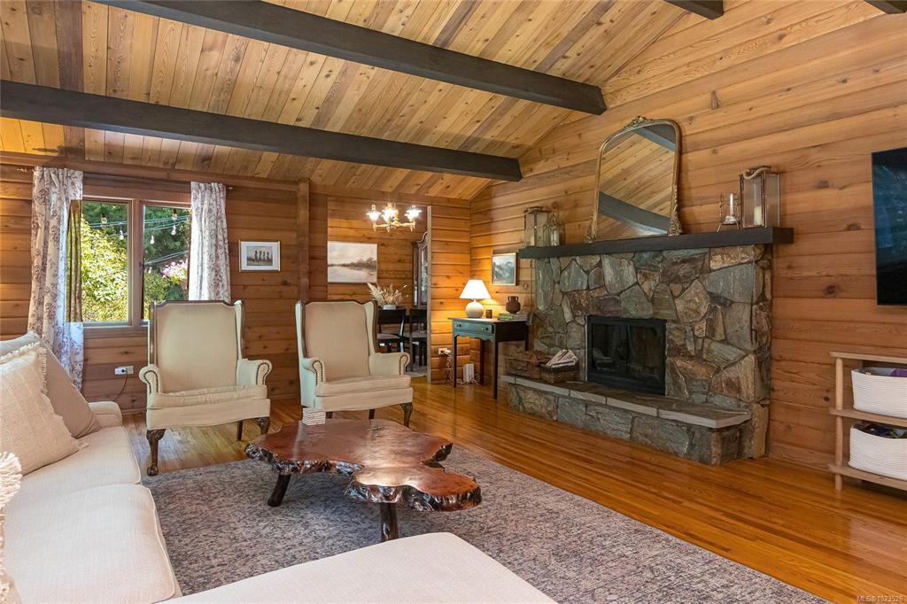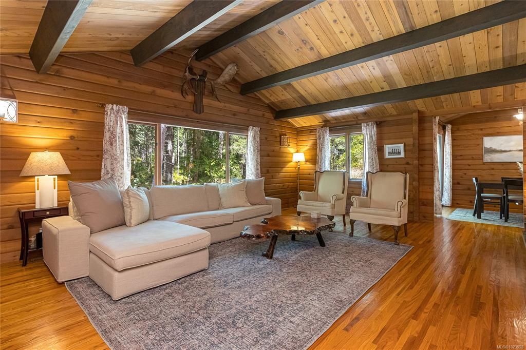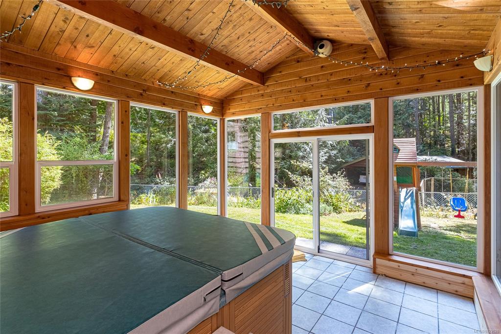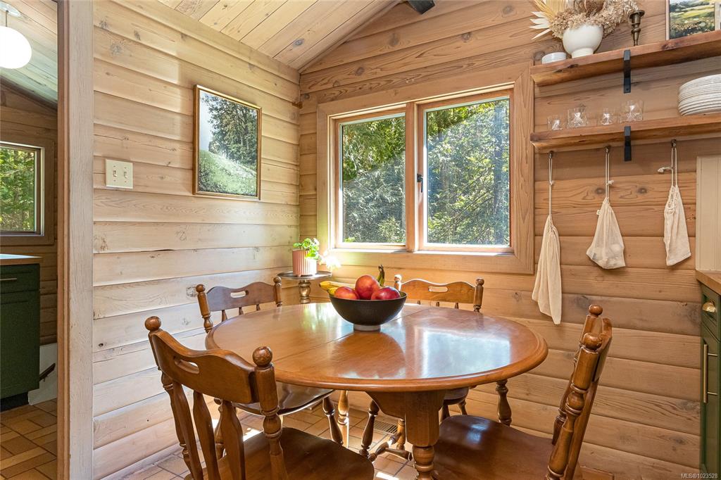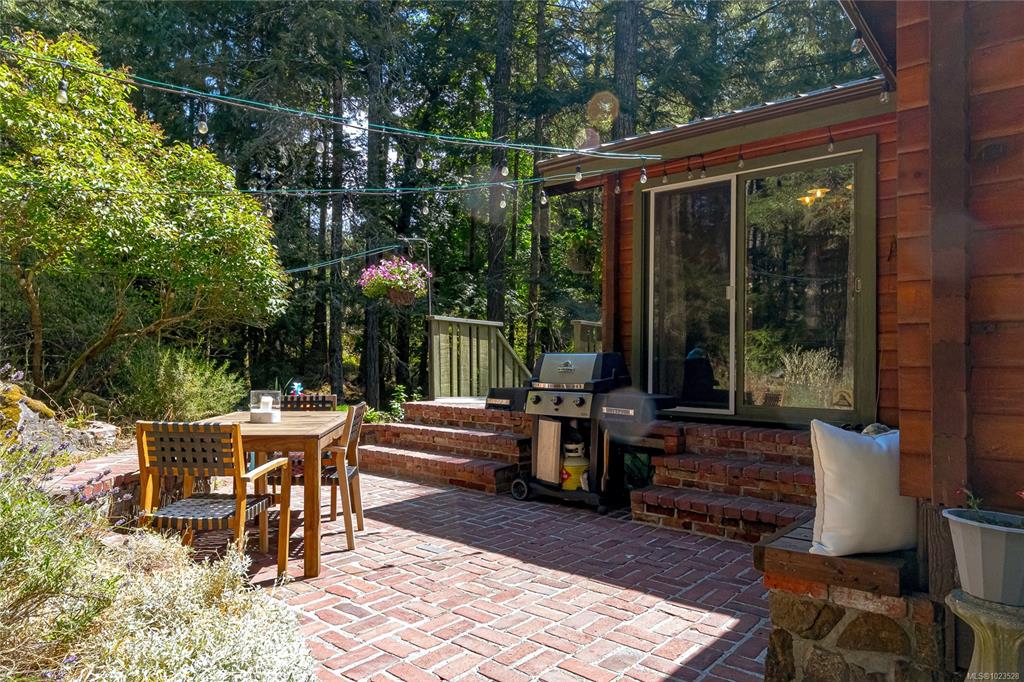 Come and discover this private Metchosin retreat, on over 2 acres of forested beauty with a seasonal stream and the timeless character of a Pan-Abode style home. With 4 bedrooms and 3 baths across approx. 2,400 sqft, this inviting family residence offers wood-clad walls, vaulted ceilings, and spaces that radiate warmth and charm. Gather in the glass-enclosed hot tub room, relax on the deck surrounded by nature, or explore the grounds and outbuildings including a powered workshop, chicken coop, shed, and fir...
