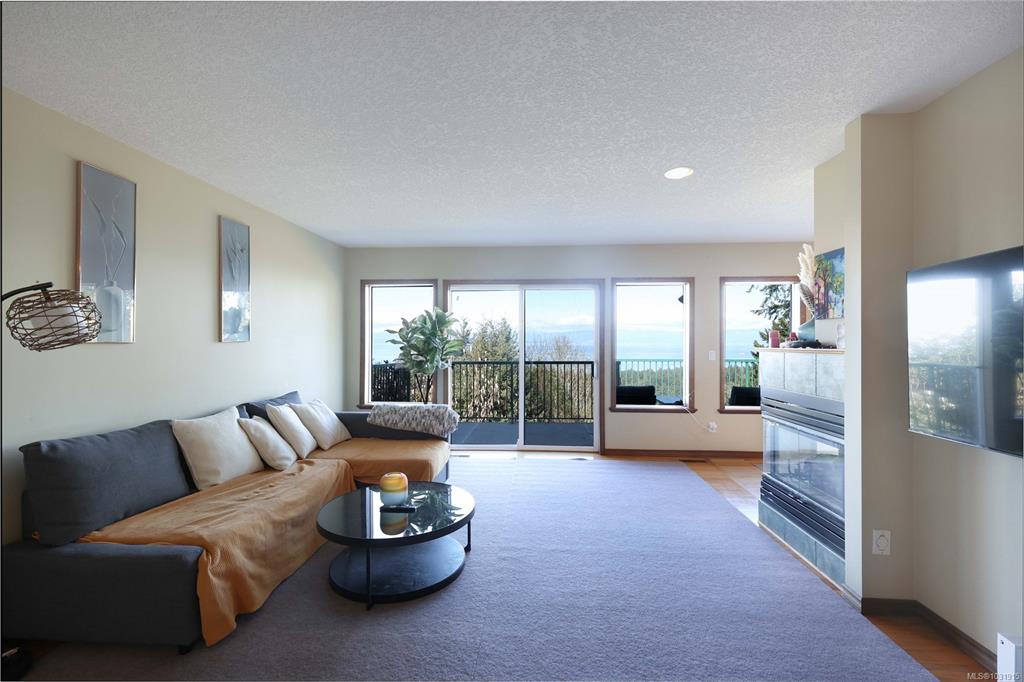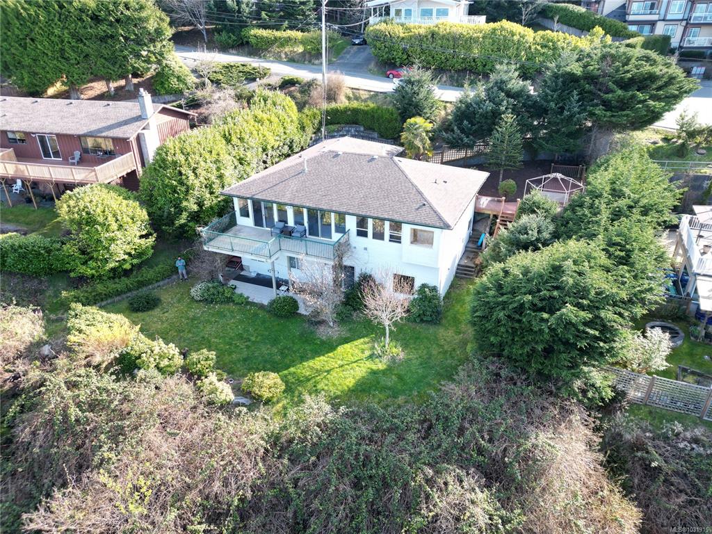 Enjoy breathtaking panoramic ocean and mountain views across Georgia Strait. As you descend the driveway, you enter your own private paradise. The front courtyard features mature landscaping and a spacious sitting area, perfect for entertaining in the afternoon and evening sun. Inside, a wall of windows showcases stunning ocean vistas. The main level boasts beautiful hardwood floors, three bedrooms, and two full baths. The kitchen, with real wood cabinets and granite counters, flows into the dining room and...