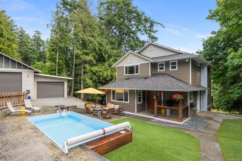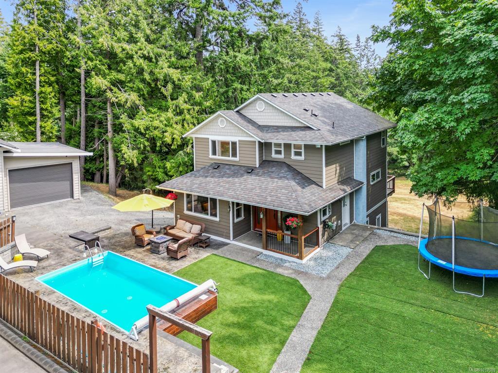 Welcome to 4719 Kevere Road, your private, sunny Metchosin retreat. Set on nearly 2 acres, this exceptional property offers a rare blend of peaceful rural living and modern upgrades. Featuring a 4-bed + office, 4 bath home, 1-bed suite, and dream 20x30 heated shop with 14x27 addition. Modern kitchen with black stainless appliances, new flooring/paint, updated windows, and Hardie Plank siding. Enjoy a 10x20 in-ground pool with stamped concrete patio, ideal for entertaining. The primary suite features an ensu...