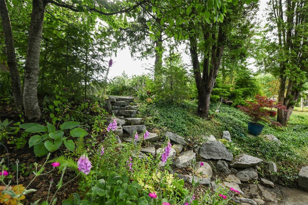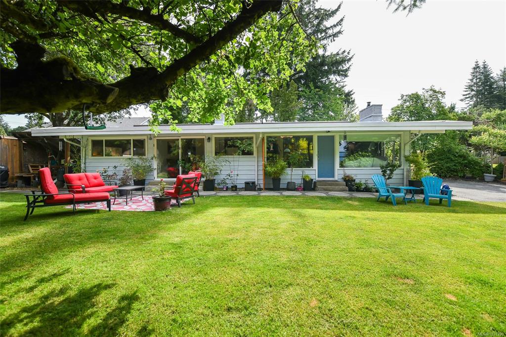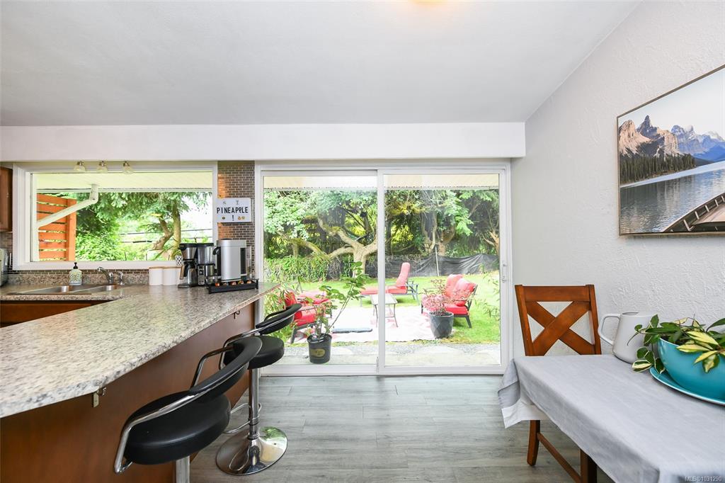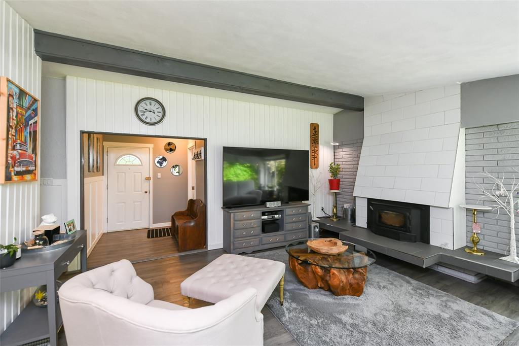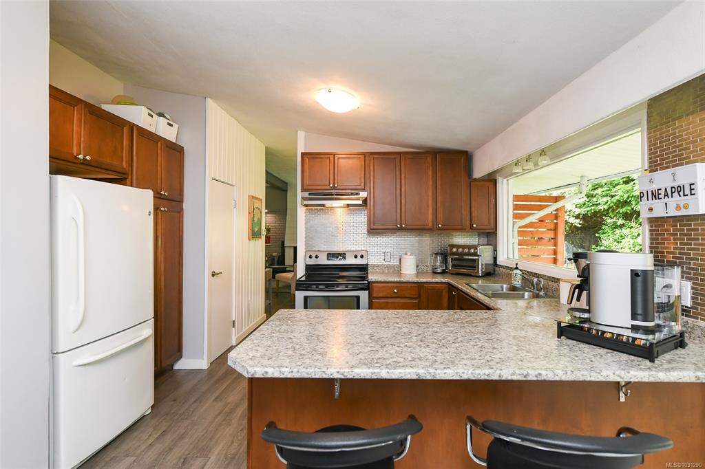Mid-Century Modern Rancher on Oversized Lot in Courtenay Just minutes north of downtown Courtenay, this charming mid-century modern rancher sits on a spacious 0.34-acre lot with dual frontage on Island Hwy and Oakridge Drive. There's plenty of room to park your RV, boat, or other toys. Inside, you'll love the vaulted ceilings and vinyl floors that add warmth and character to the living room, complete with a woodstove insert for cozy, efficient heating in the winter. The updated kitchen features tile backspl...