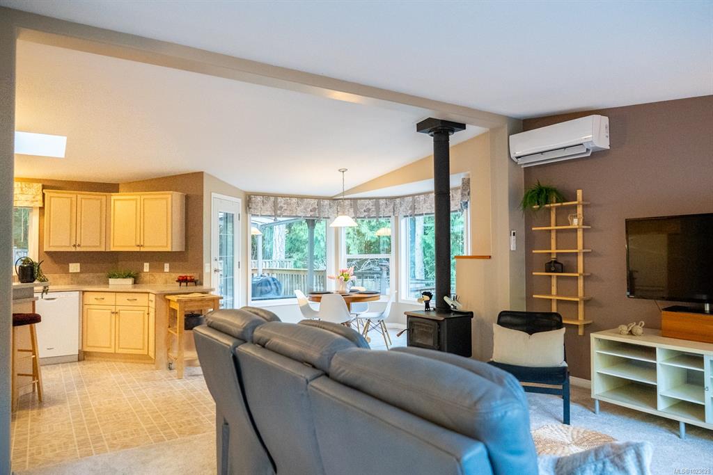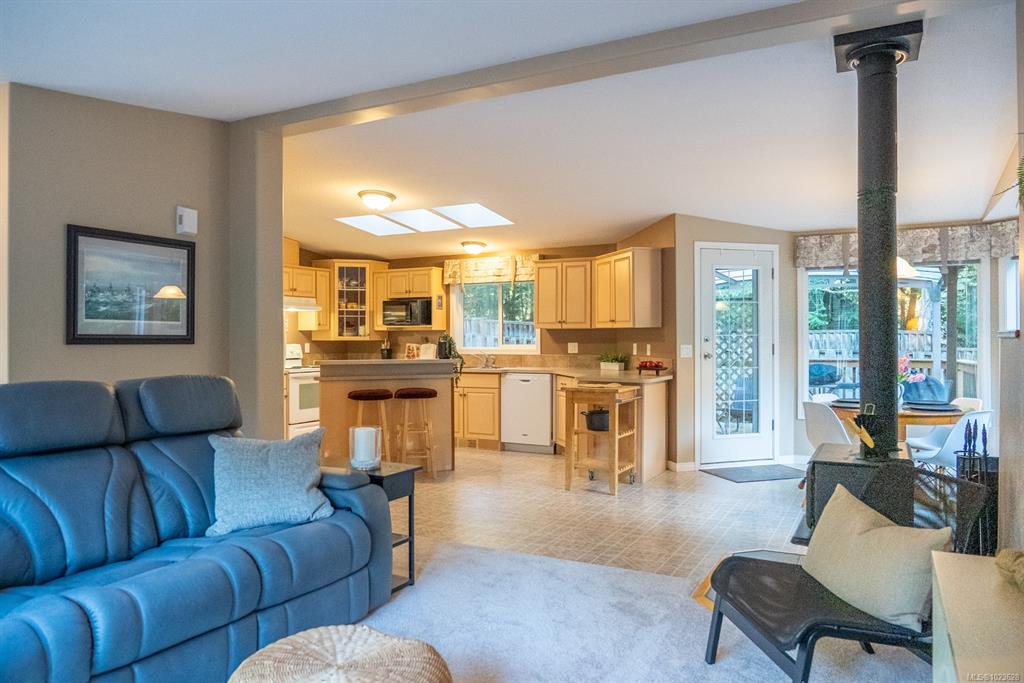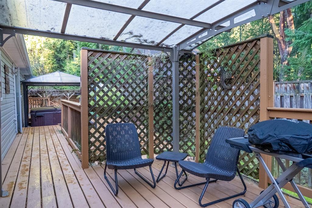 Well-maintained one-level home offering easy, main-level living in a private setting backing onto parkland. Bright and welcoming, the open living and kitchen area features a functional layout with no stairs, ideal for comfortable everyday living. Step outside to an outdoor living space with room to dine, relax and unwind in the hot tub, surrounded by mature landscaping and fencing that create a peaceful, private setting. Landscaping with irrigation system and fenced garden with apple trees add to the char...