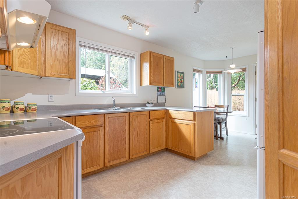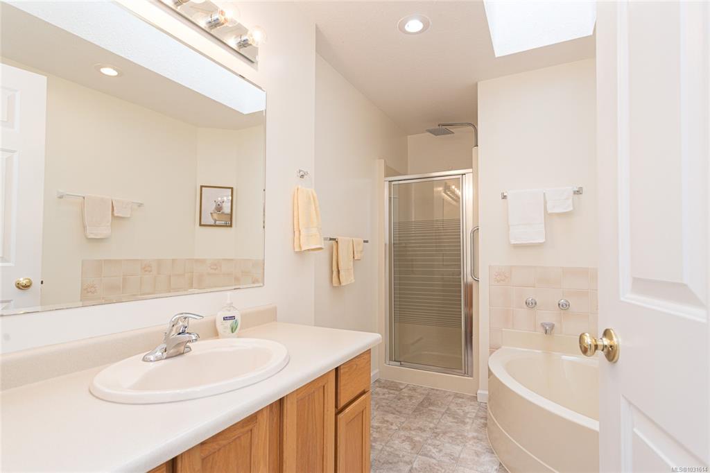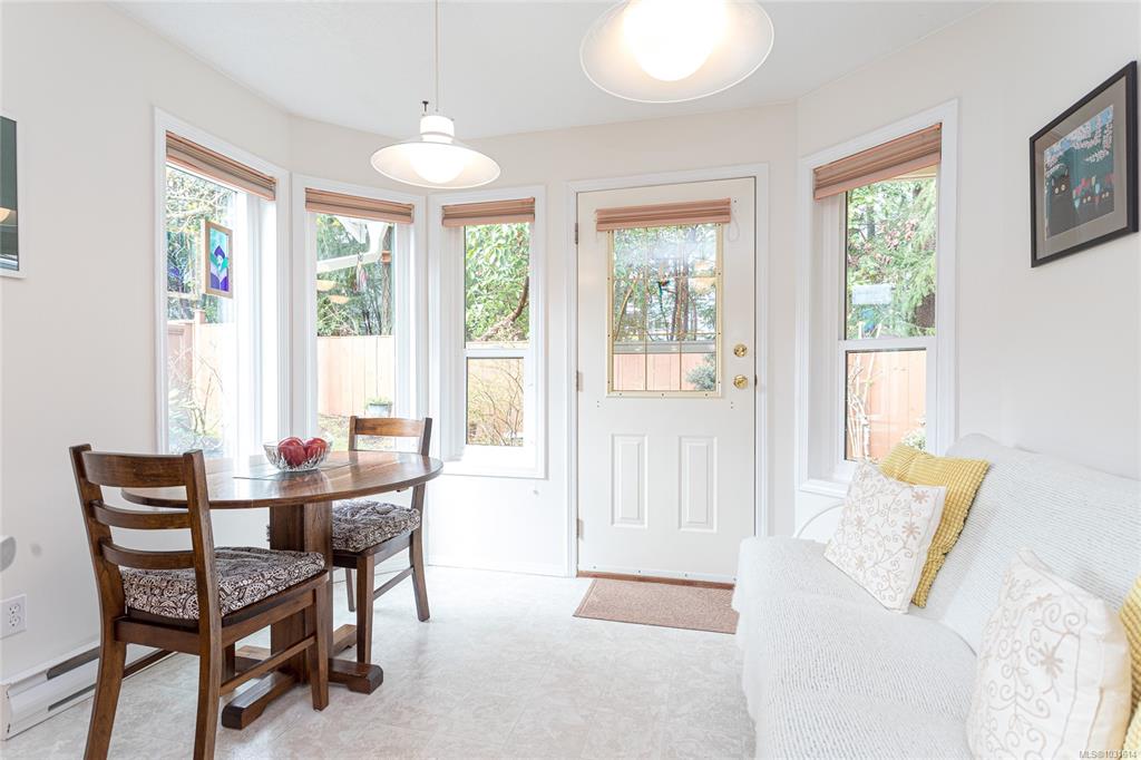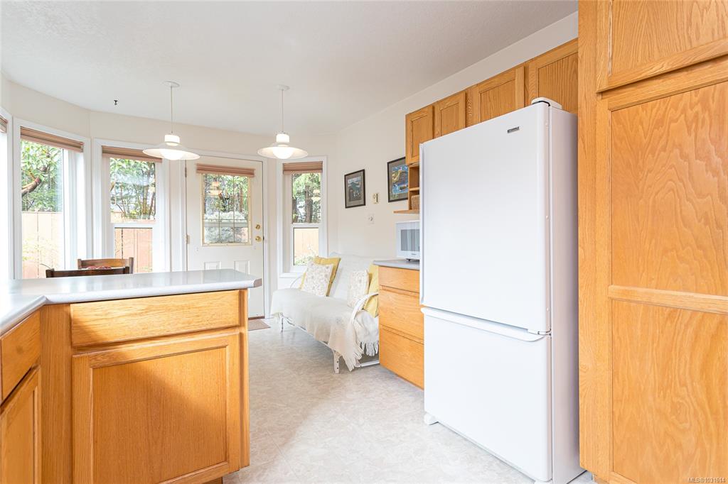 Welcome to this beautifully maintained patio home in a sought-after 55+ North Nanaimo community. Ideally positioned at the back of the complex away from the road, this end unit enjoys abundant natural light and backs onto greenspace. The bright, spacious living and dining area is ideal for entertaining, while the kitchen offers ample cabinet and counter space and an eating nook with access to a private patio and yard. The oversized primary suite features a 4-piece ensuite, sitting area & ample closet space...