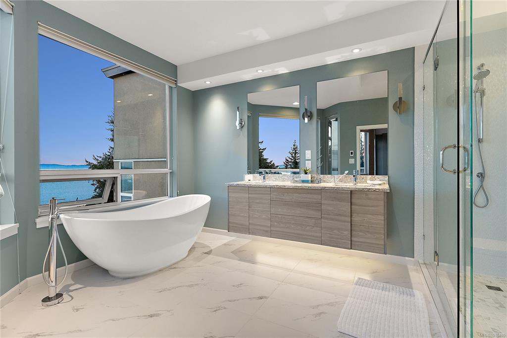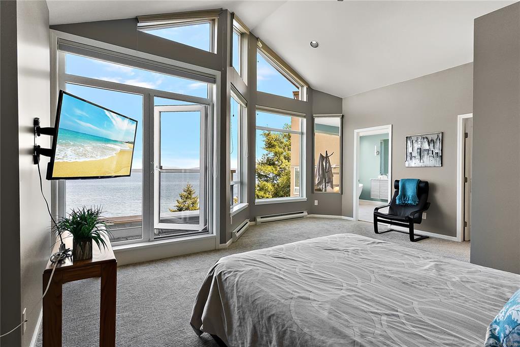 STUNNING, extremely private and super bright 3-bedroom (or 2-bedroom plus den) two-level townhome in the exclusive Seascape oceanfront community offering georgeous 180-degree views of Haro Strait, islands, and Mount Baker from almost every window, featuring gleaming maple floors, three brand new luxuriously finished bathrooms, fresh paint throughout, new carpeting in bedrooms, several skylights, and an elegantly refinished fireplace in the livingroom. 9-foot ceilings downstairs and dramatic ceiling vaults u...