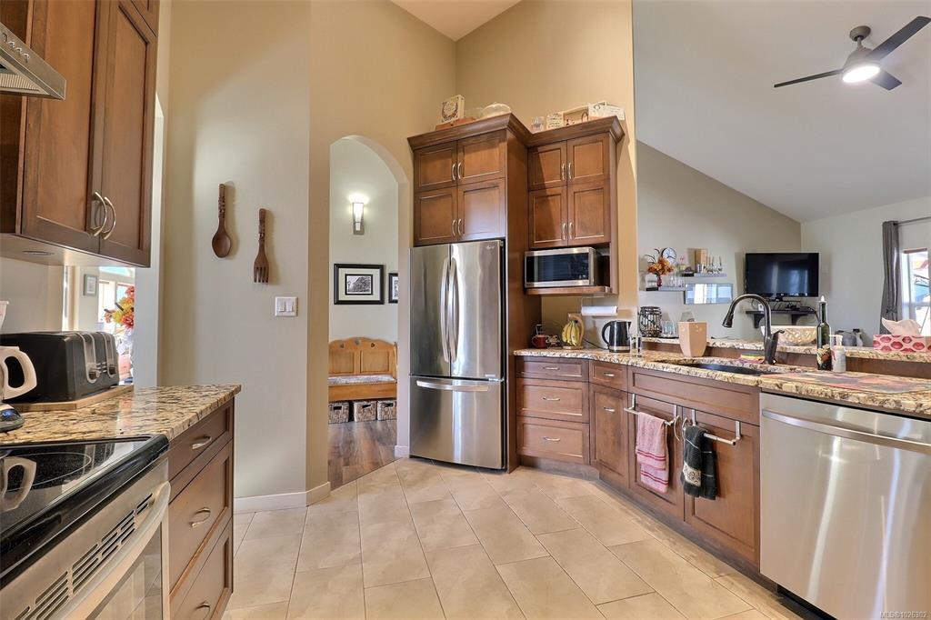 Price reduced, motivated seller. This beautiful 1850 sqft, 3 bedroom, 2 bathroom rancher is located in The Slopes at Lake Cowichan. The home has a 16’ vaulted ceiling at the peak and beautiful arched entryways throughout, giving this home a certain elegance. Enjoy the Chef’s kitchen with solid Maple and Birch wood cabinets, stainless steel appliances, Granite countertops with eat up bar that is open to the living room with French doors that lead to a covered patio which is great for those year-round barbecu...
