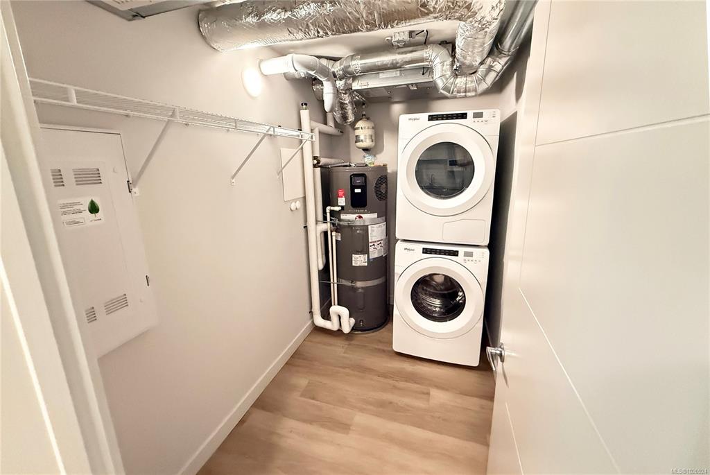 Just Listed! 2 bdrm condo on the rear of the building (facing trees/lake). No elevator required from lobby. This south-facing spacious modern space includes an open living/dining/kitchen with island/breakfast bar, leg walk-in closets in both bedrooms, a sizeable storage/utillity room, and a dedicated underground parking stall. Built in 2022 , this enviro-friendly building includes rooftop solar pads, high efficiency heating, and low-impact landscaping. Also included is access to the clubhouse that includes ...