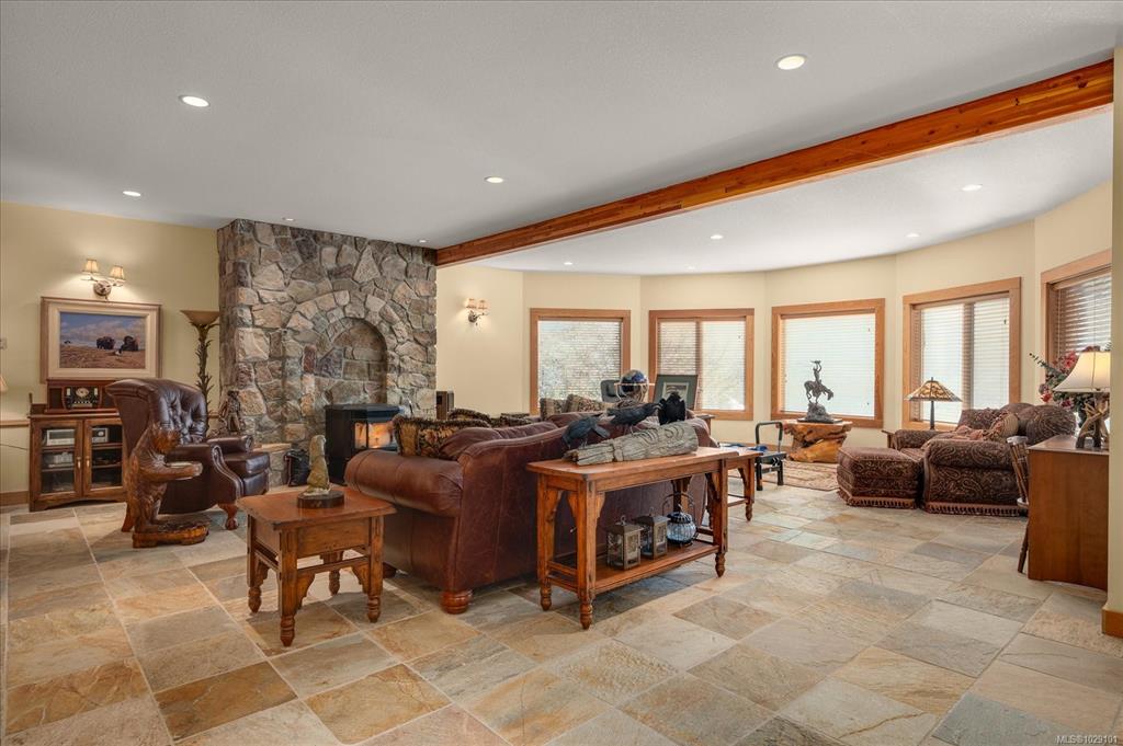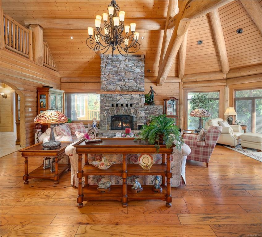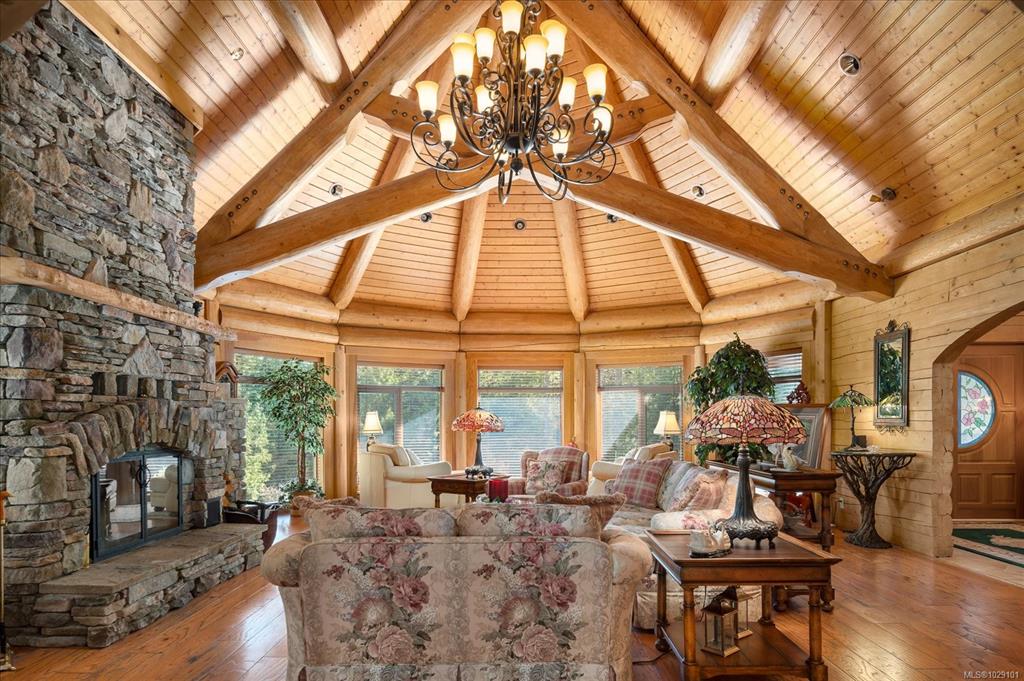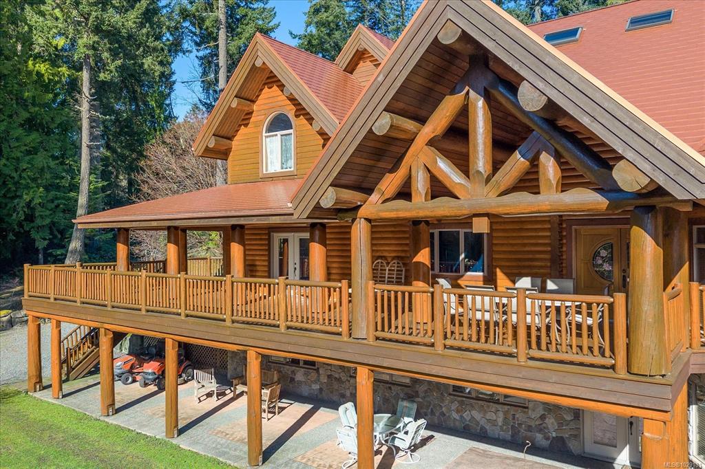 Quiet country living awaits with this impressive 8,200 Sq. Ft. custom Engelmann Spruce Log Home! Sited on 15 private acres in coveted Yellow Point, just 15 minutes to Nanaimo or Ladysmith. Exceptionally finished throughout, the residence features a breathtaking great room with grand kitchen and dining area plus a sunroom and a grand living room with a dramatic 22’ vaulted ceiling anchored by a grand stone fireplace. Perfectly designed for entertaining spaces! Bright, south-facing large decks and patio areas...