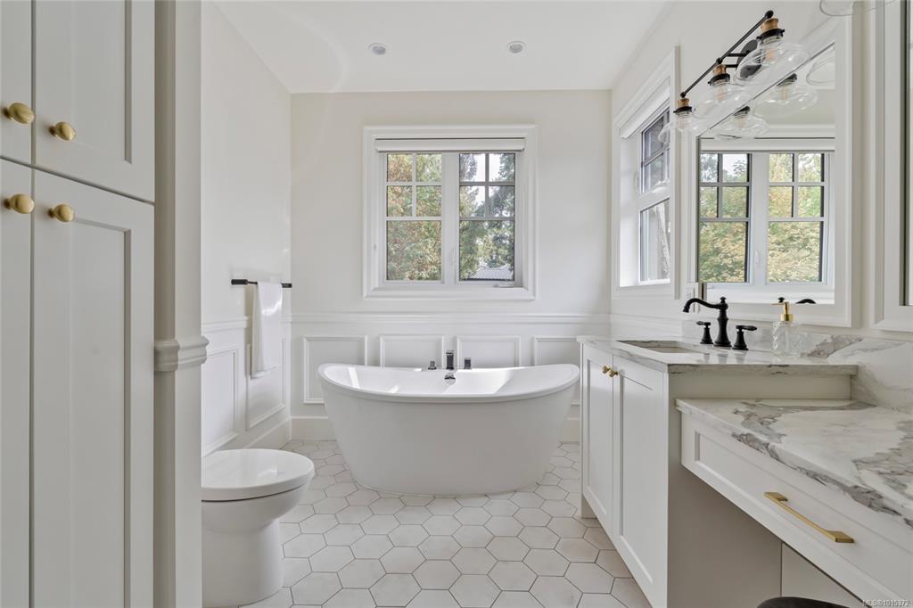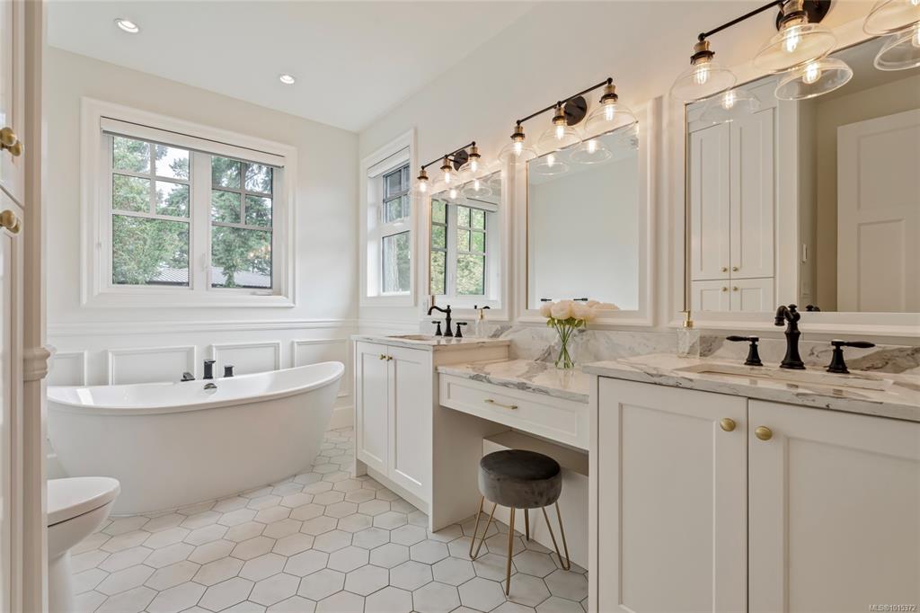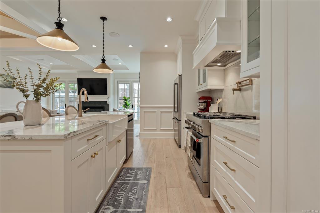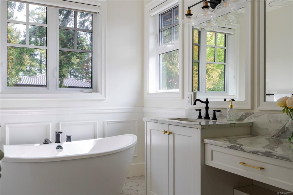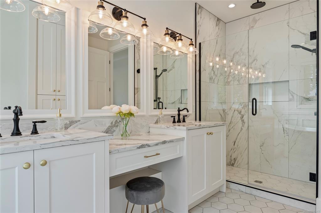 Located in picturesque Cordova Bay, this brand new 4 bed/5 bath home, offers a blend of modern finishes & timeless character and details. Spread across two levels, and offering over 3,000 sqft of living space w/ a thoughtfully designed layout that maximizes both space & functionality. Main floor offers open concept living room w/custom built-ins & gas FP, dining w/gorgeous mill work, stunning kitchen with Kitchen Aid SS appliance package & entry way living room with FP and built-ins as well as separate medi...