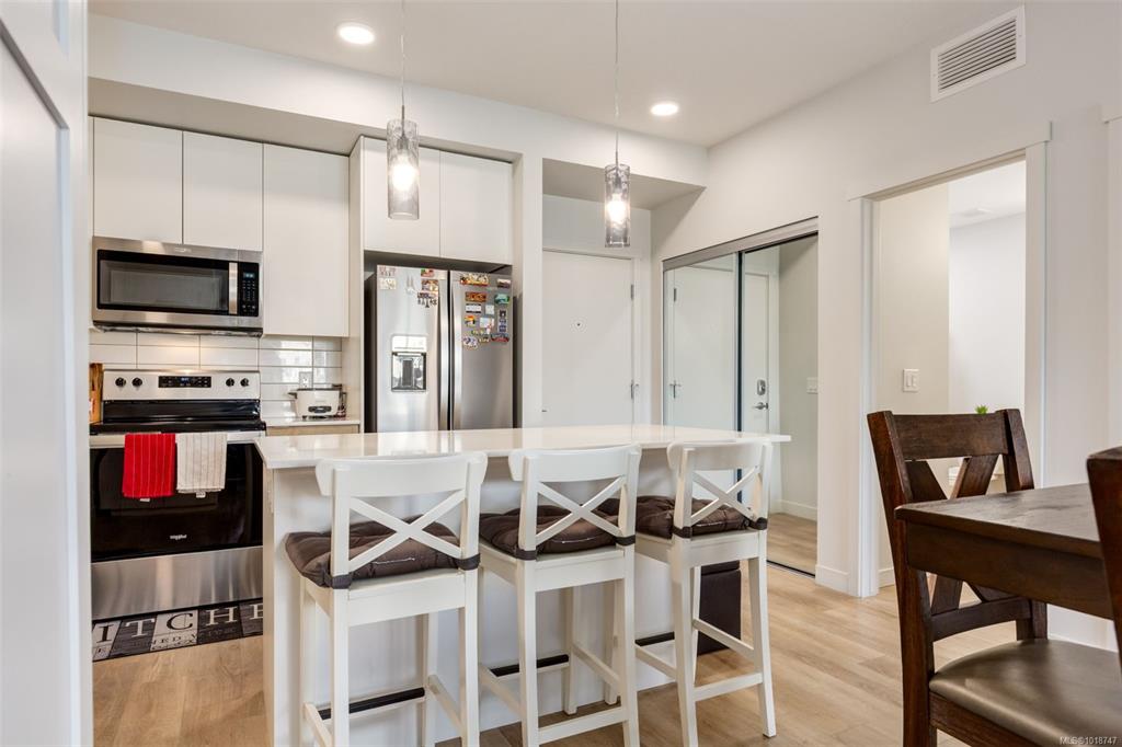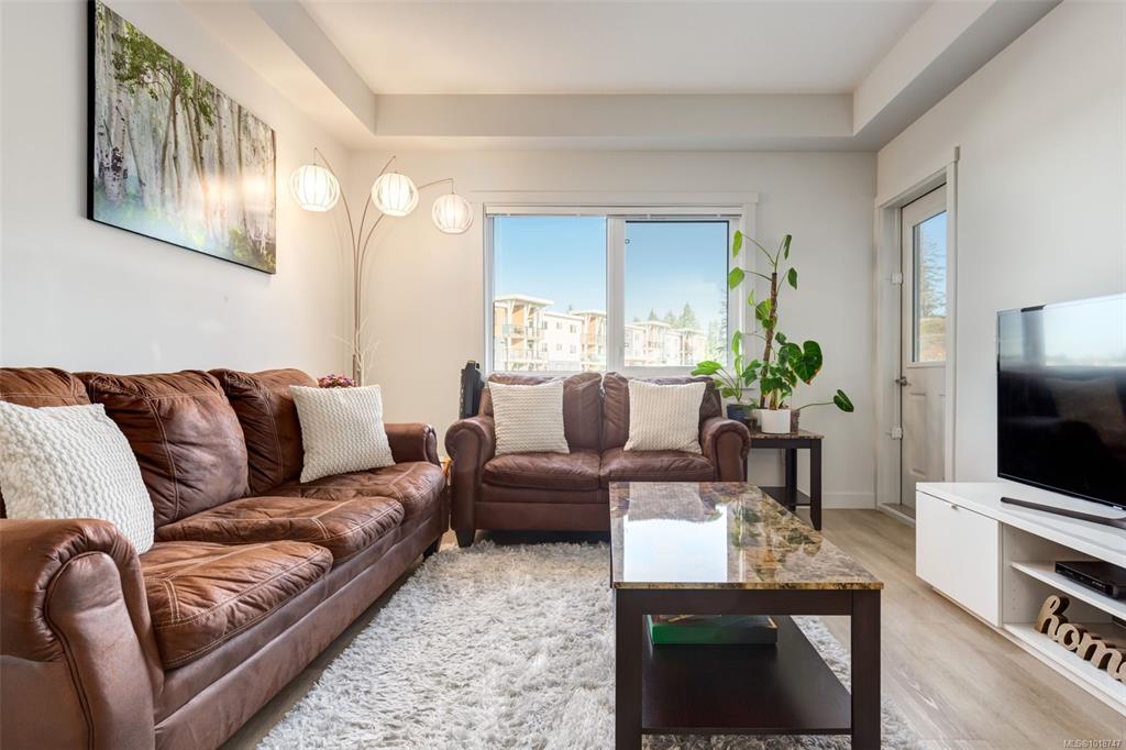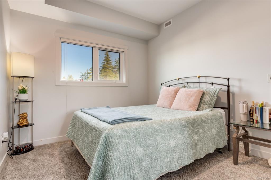 Welcome to this stunning home in Lakeview Terrace! This Built Green Platinum certified 2-bedroom, 2-bathroom residence offers a fantastic vantage point with sweeping mountain views over North Nanaimo. Completed in 2022, this modern home prioritizes sustainability with roof-installed solar panels, a heat recovery ventilation system, and in-unit EV charger capability. The bright interior boasts a contemporary design featuring up-to-ceiling cabinetry, quartz countertops, and modern fixtures. Maximizing privac...