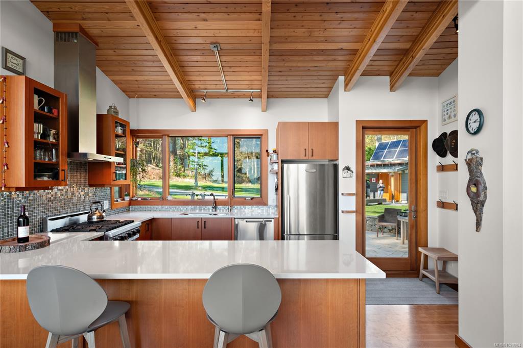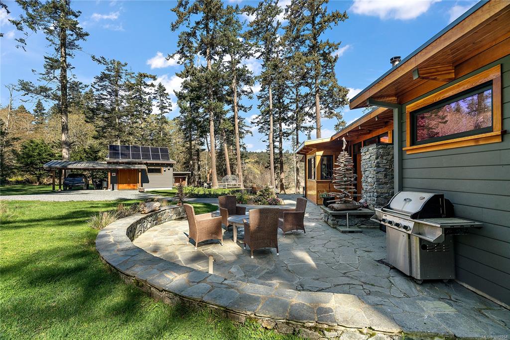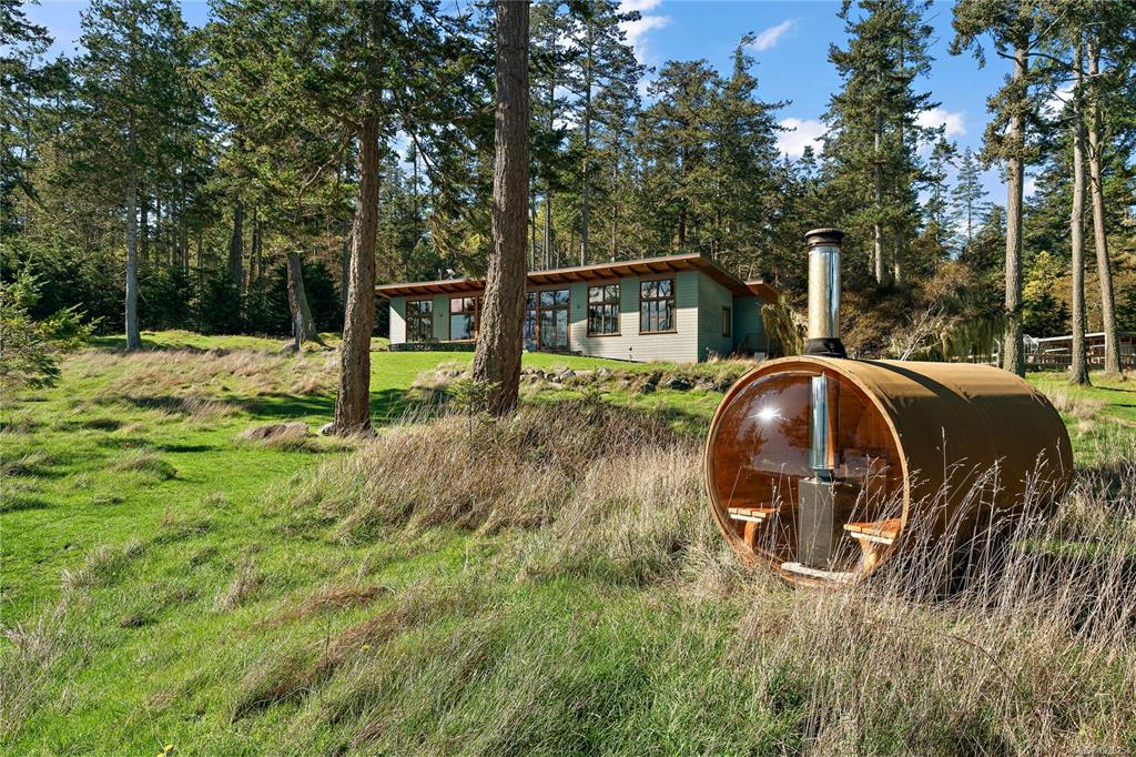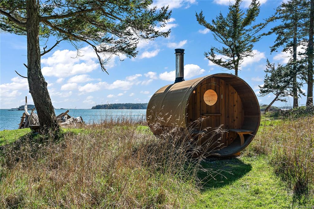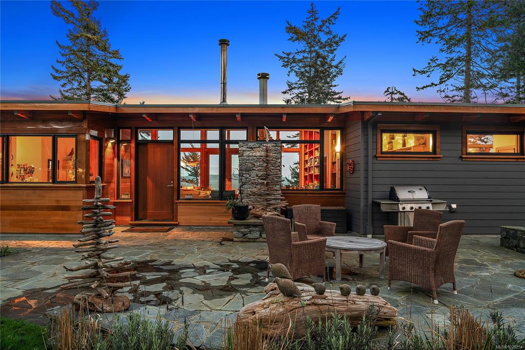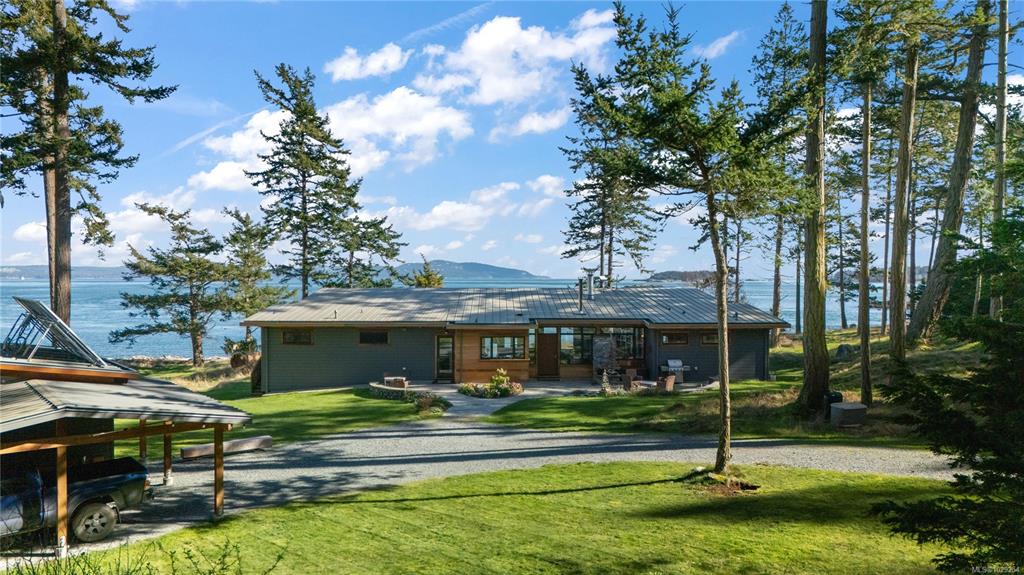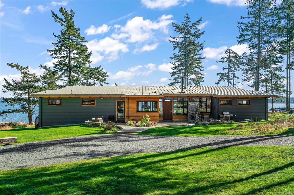 Rare south-facing walk-on waterfront on Sidney Island—3.13 acres with 455 ft of beachfront, bordered by conservancy land on one side and only one neighbour, offering exceptional privacy. Located at the end of Arbutus Spur, this timeless single-level West Coast home by Rob Parsons spans 2,100 sq.ft. with 3 beds and 2 baths, warm fir flooring, and a bright open layout capturing ocean views. Well equipped for off-grid living with solar, inverter, generator, hot water on demand, Blaze King wood stove, and stone...