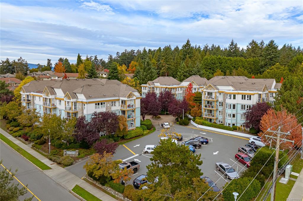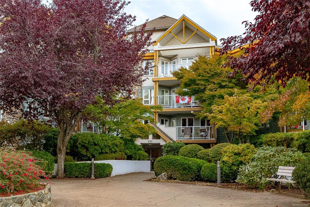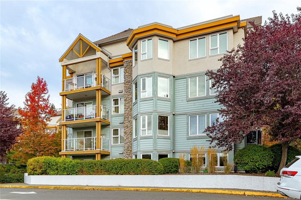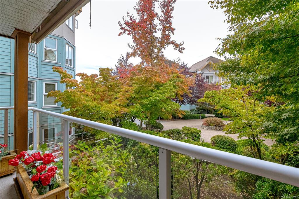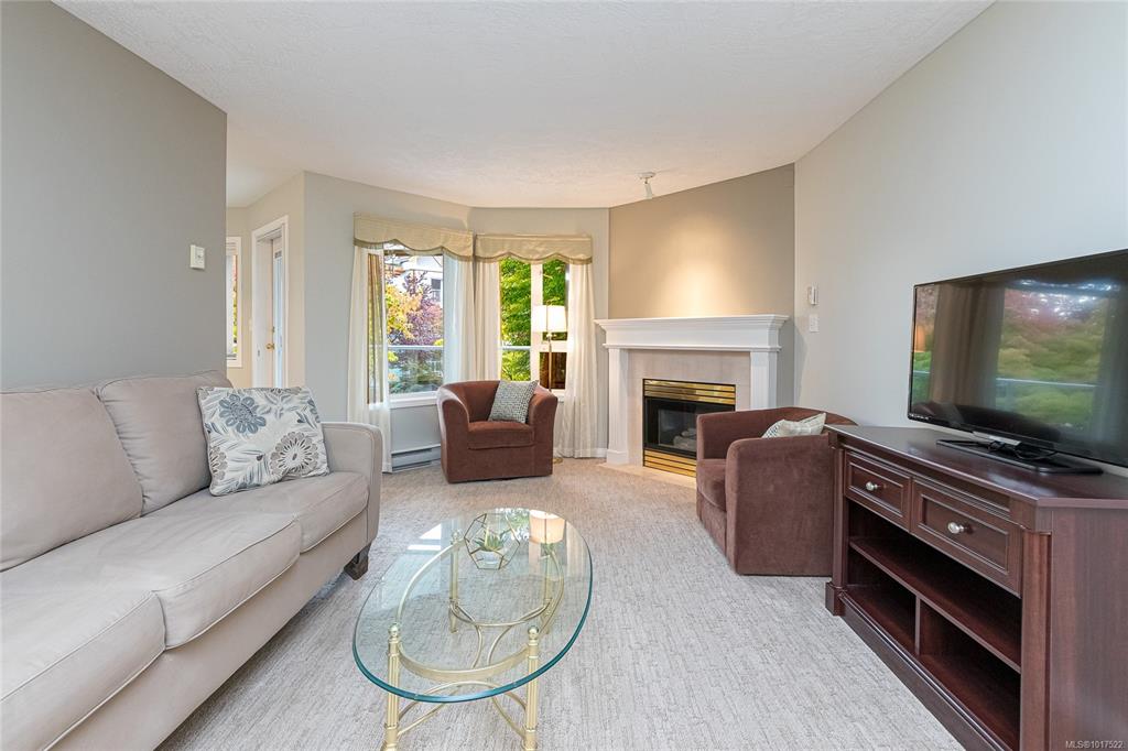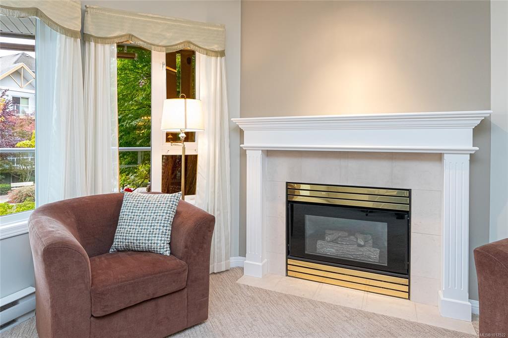 This bright & spacious 2-bedroom, 2-bath home offers unbeatable access to everything Victoria & the Peninsula have to offer. Natural light fills the open living area, creating a warm, welcoming atmosphere. The smart floor plan provides privacy with bedrooms separated by the main living space. Enjoy mornings in the sunny eat-in kitchen with ample storage or host dinners in the formal dining room. As fall sets in, cozy up by the gas fireplace (incl. in strata fees) or unwind on your balcony overlooking the co...