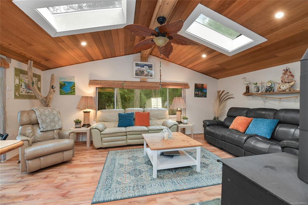 Tucked away amongst a border of trees, on a 1/2 acre property, is a 1084 sqft nicely updated 3 bedroom, 2 bathroom cabin with wood plank vaulted ceiling, new roof, 2 new skylights and a floor plan that flows nicely. If it is outdoor living you crave, you will not be disappointed with 1052 sqft of deck space featuring a fire pit and outdoor shower. Are you looking for a workshop or somewhere to park your boat or RV? You are in luck, this amazing garage is 10'8' high to the rafters and is 805 sqft! Whether y...