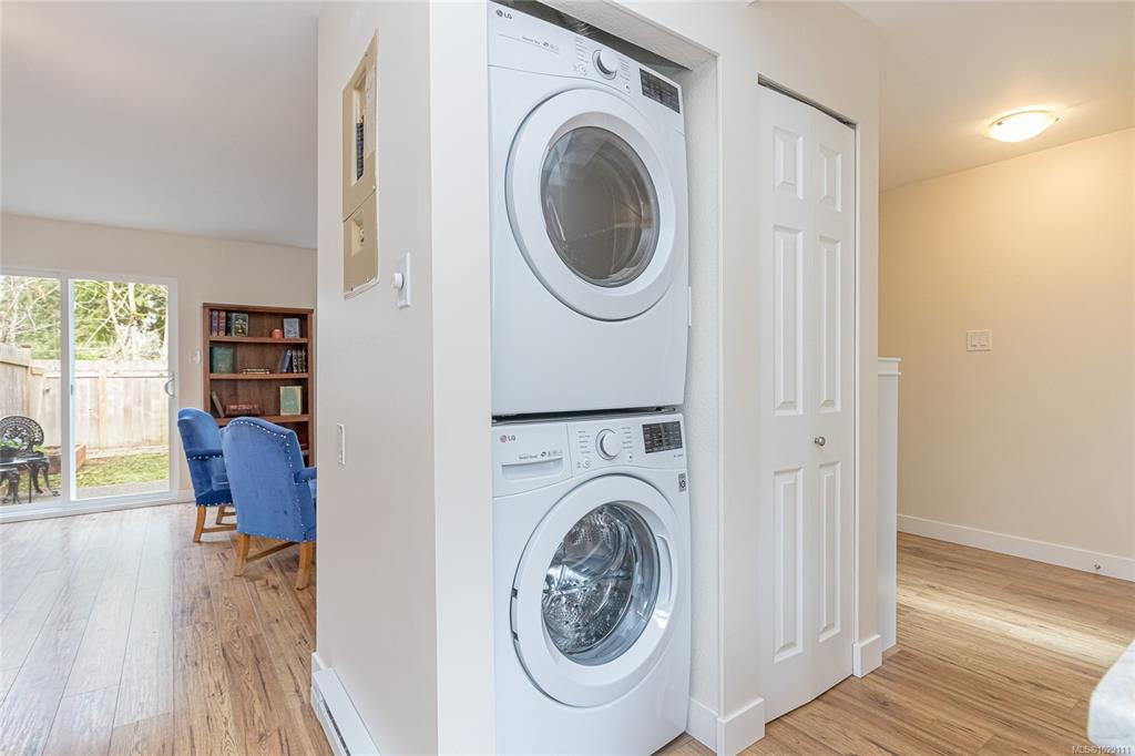 Charming 2 bedroom, 1.5-bathroom townhouse in sought after Qualicum Beach, ideal starter home or investment. This bright, two-level unit features updates done in the last few years, new laminate flooring, stair carpeting, renovated bathrooms, kitchen counter tops and newer appliances including washer and dryer. The main living room/dining room area opens to a fully fenced backyard with patio and raised garden beds, perfect for summer planting and outdoor relaxing. Upstairs offers two generously sized bedroo...