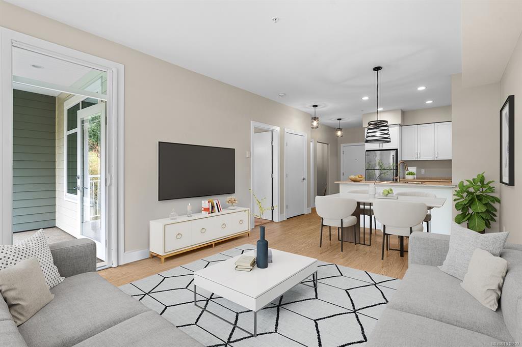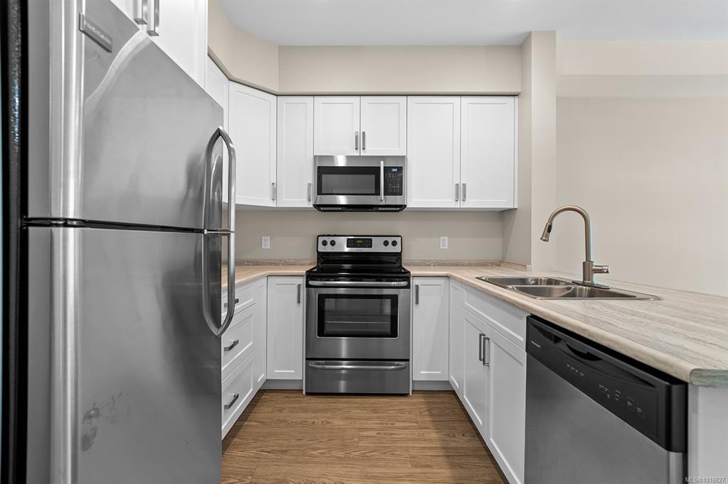 Welcome to unit 213 at Songbird Place, an inviting 1-bedroom + den, 1-bath condo offering 687 sq ft of well-designed living space in the heart of North Nanaimo. Built in 2015 by Windley Contracting, this quality home features 9-foot ceilings, large windows that bring in natural light, and a stylish open-concept layout. The kitchen includes stainless appliances and ample cabinetry, flowing seamlessly into the bright living and dining areas. Step out onto your private balcony to enjoy morning coffee or unw...