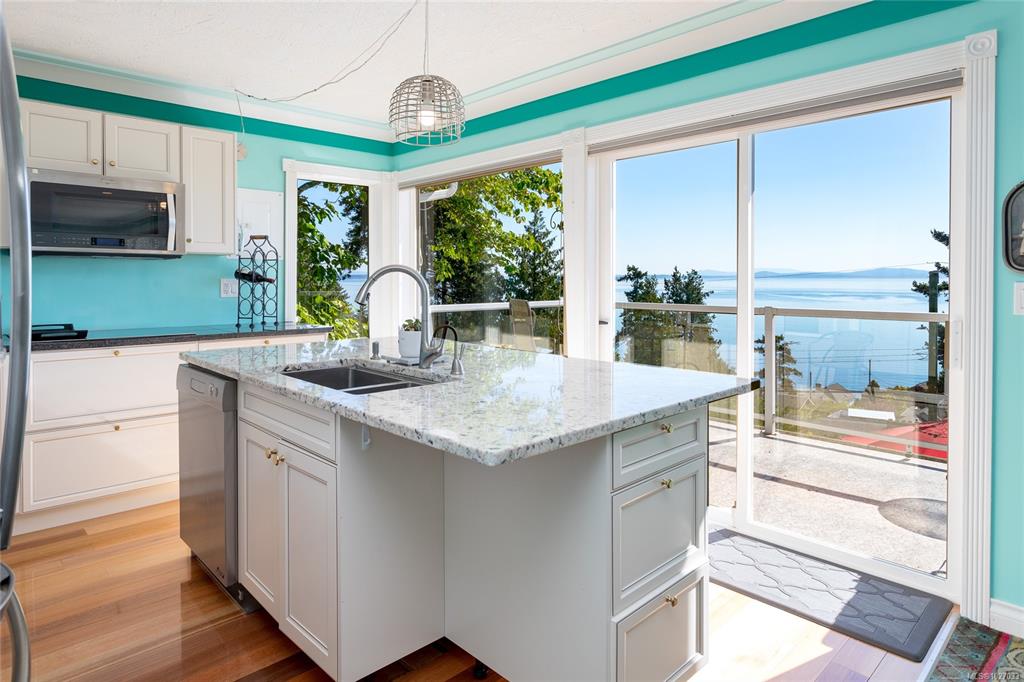 One of a kind breathtaking ocean view featuring Mt. Baker, the Haro Straight and the San Juan Islands! Perfect for multi-generational living with three full sets of appliances. Some luxurious upgrades like high quality hard wood & exquisite tile flooring. Priced for you to upgrade to your tastes. Three large kitchens with tons of cabinets & countertop space. The top floor kitchen offers great workspace with premium granite counter tops & an astounding ocean view! 1592 sq. ft. of decks, balconies & patios of...
