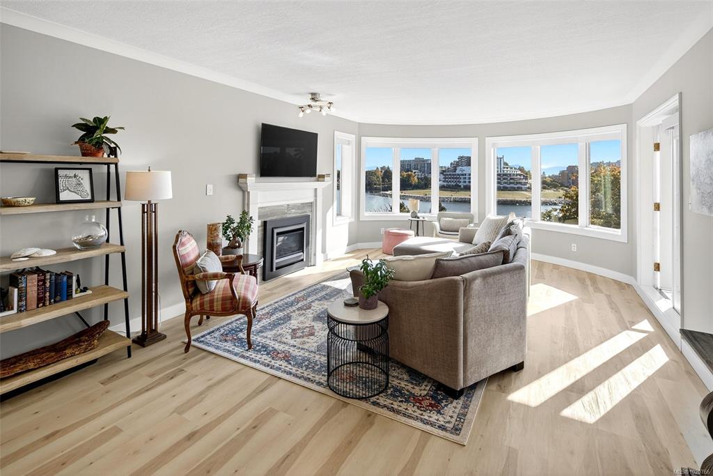 OCEANFRONT 2 BEDROOM CONDO - SONGHEES! Breathtaking harbour views from every principal room in this elegant 2-bed, 2-bath executive home at Songhees Point: steel & concrete building. Notable: 8’5 ceiling, open-concept, lux kitchen w stone counters, SS appliances, breakfast bar. Spacious living & dining rm w 7 bay windows, new gas fp & mantle, French doors to deck. Primary suite boasts ocean views & deck, walk-in closet, spa-inspired ensuite w radiant flr. 2nd bed/office & family rm w Murphy bed. Walk-in lau...