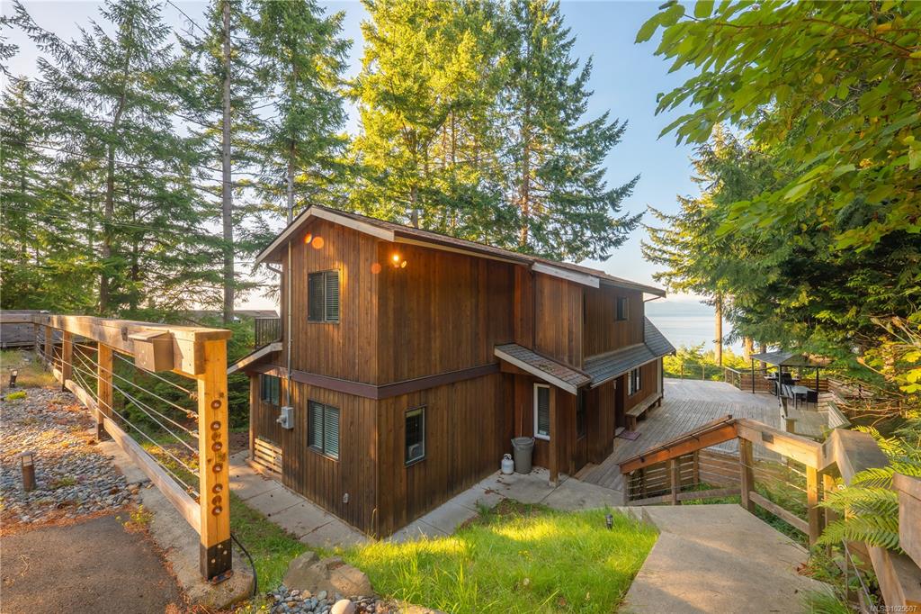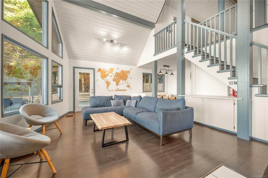 VIEWS! Set on a private 0.20-acre lot in desirable North Nanaimo, this 4-bedroom, 2-bathroom chalet-style A-frame home is designed to showcase its breathtaking surroundings. Soaring vaulted ceilings and dramatic floor-to-ceiling windows flood the main living area with natural light while framing unobstructed views of the Georgia Strait and the Coastal Mountains beyond. A cozy gas fireplace anchors the living space, creating warmth and comfort year-round. The expansive, nearly 1,500 sq. ft. deck offers the u...