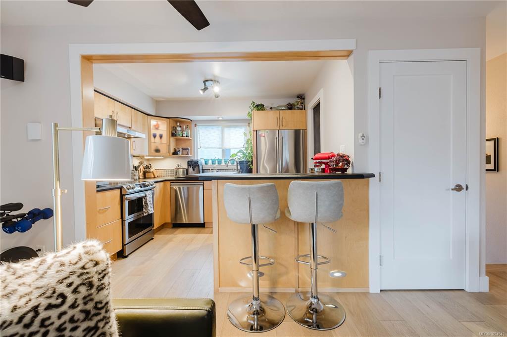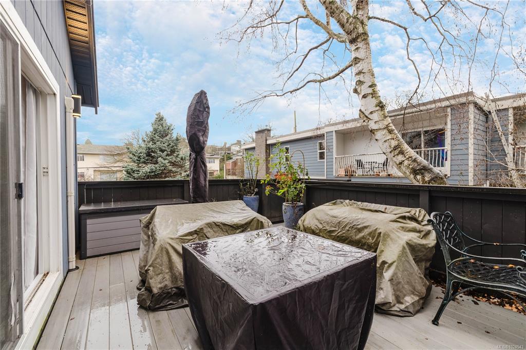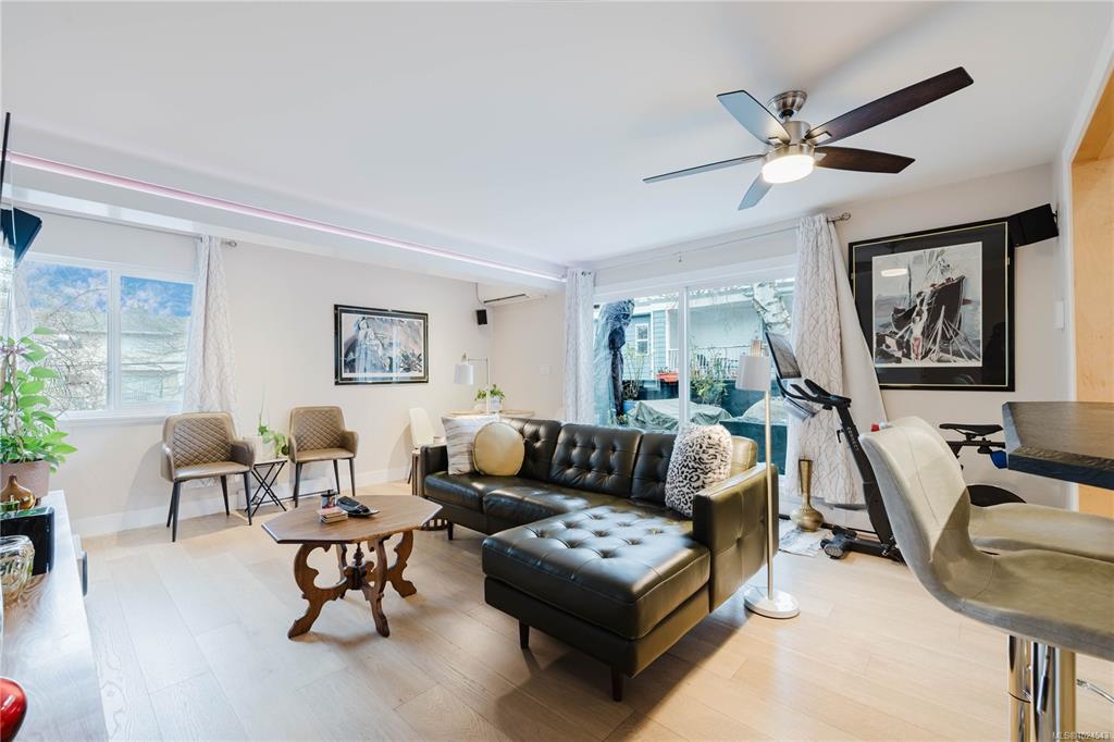 Welcome home to this extensively updated End-Unit townhome located 1 block from the ocean in Vic West. This home has been well maintained & the list of updates includes engineered hardwood floors throughout, updated bathrooms, recessed lighting, light fixtures & switches, updated doors, trim & baseboards, new heat pump, & fresh paint. The main floor features an open kitchen with stainless steel appliances & lots of cabinet space, & a spacious living room that leads to a SE facing balcony (perfect for entert...