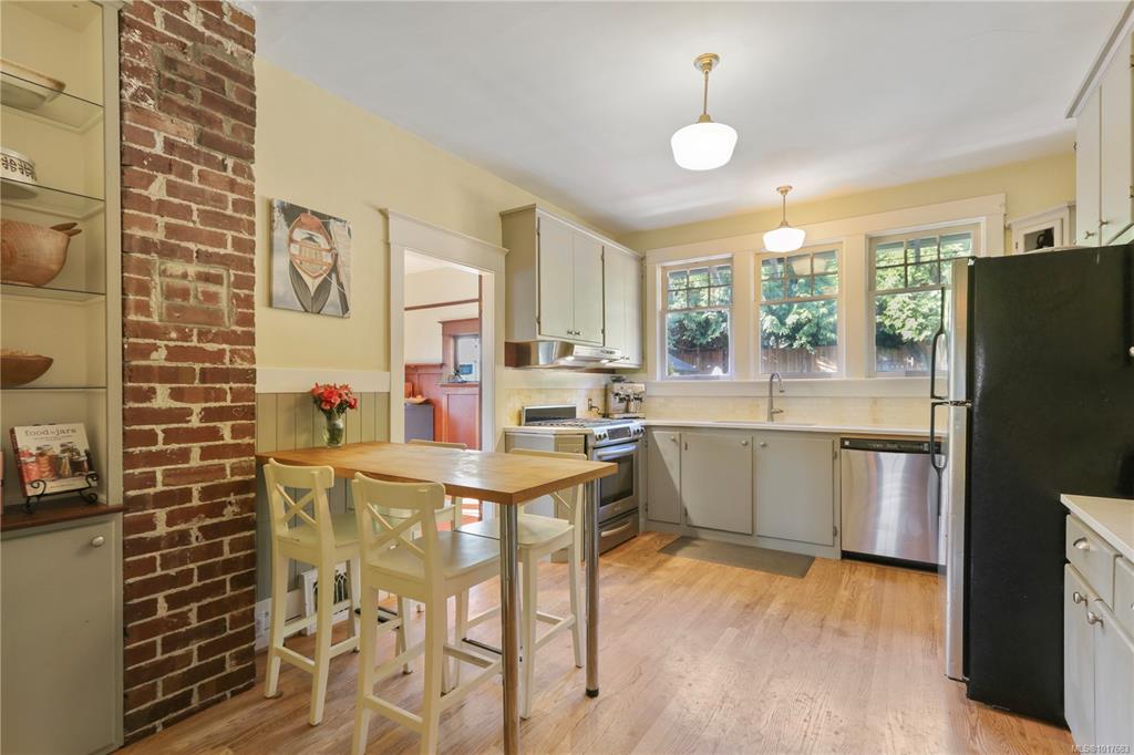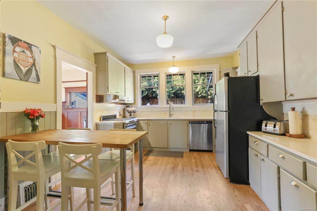 Charming character home blends timeless appeal with modern updates. Offering over 2150 sqft of living space with a refinished lower level & detached garage, it’s located just steps from the seawall, marinas, Maffeo Sutton Park & minutes to downtown & VIU. Inside features hardwood floors, original wood detailing & over-height ceilings. The living room has a newer wood-burning insert, & the kitchen includes new countertops, built-in cabinetry & mudroom addition. The main level offers 2 bdrms & an updated bthr...