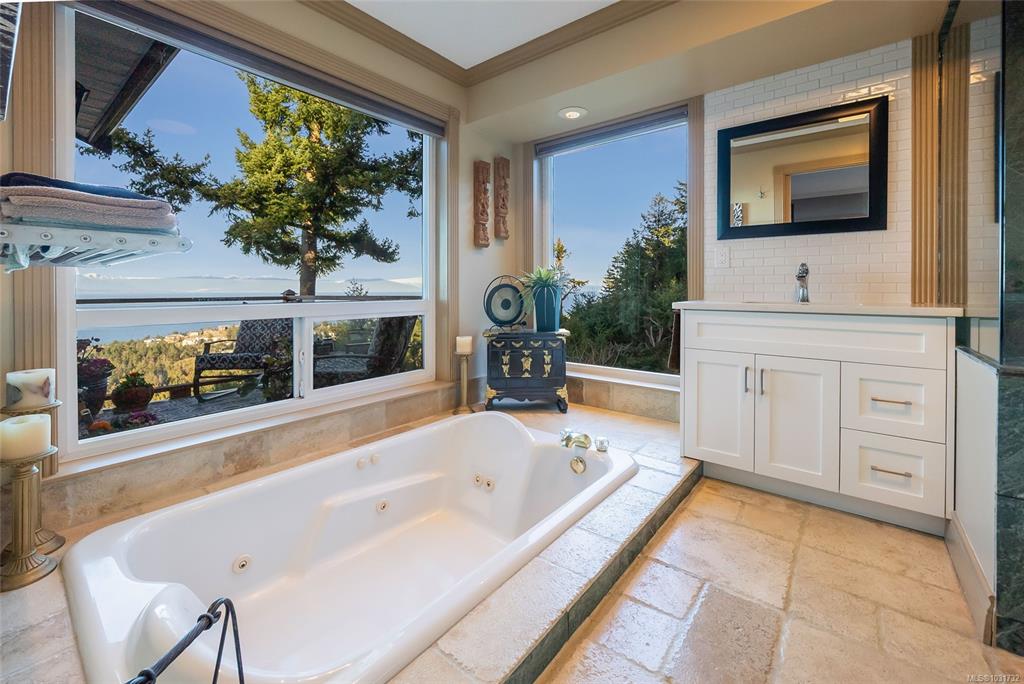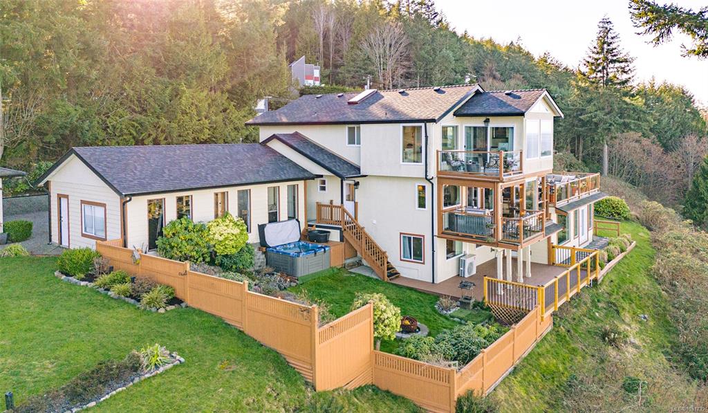 Perched on 1.18 acres with fabulous ocean and mountain views, this exceptional estate offers over 5,500 sq.ft. of living space. The beautifully renovated 4,281 sq.ft main residence is a stunning 3-bedroom upper-level home, with a private studio suite and a separate 2-bedroom suite that can easily be reintegrated into the main living area. Quality finishes throughout include hardwood flooring and expansive windows that frame the spectacular coastal scenery, while the spa-inspired primary suite invites relaxa...