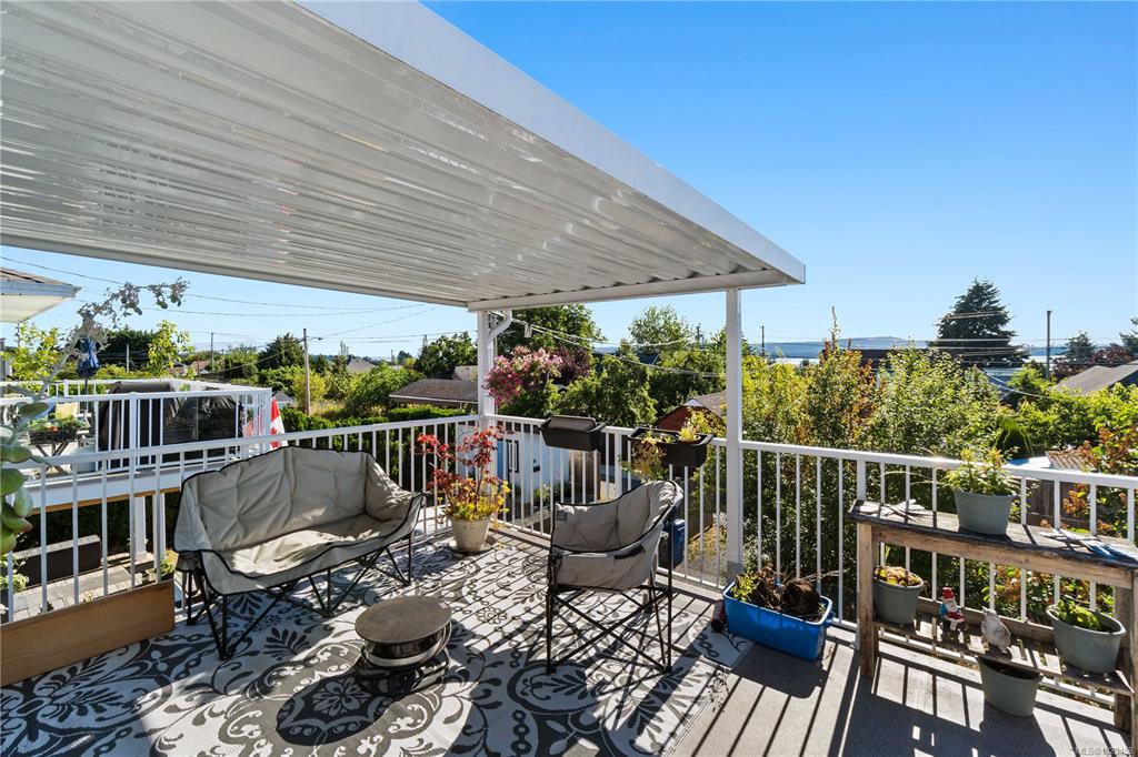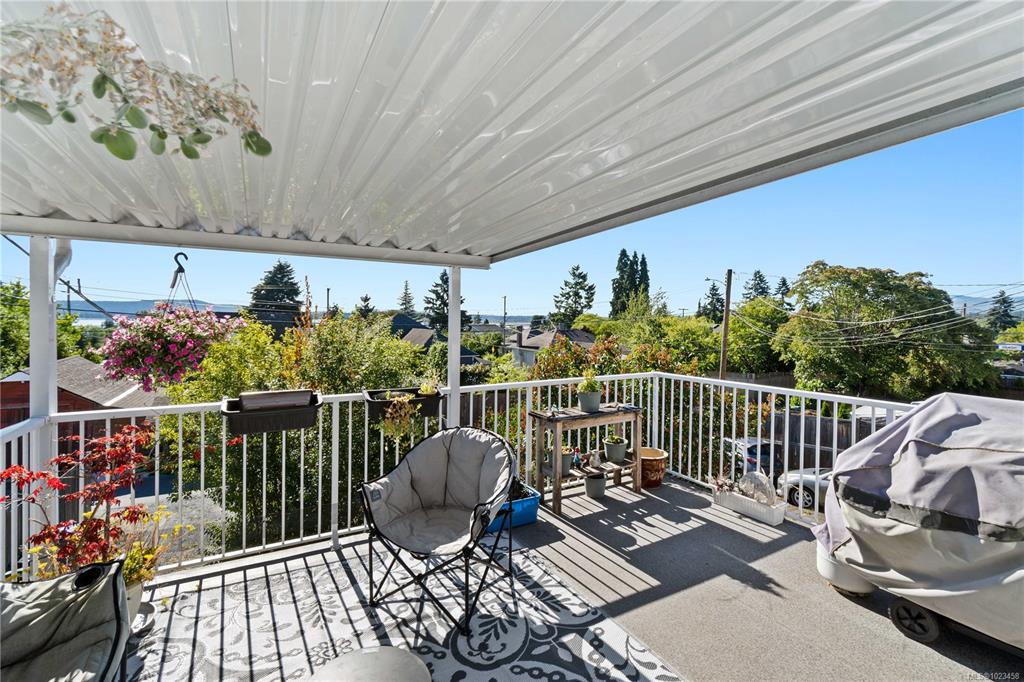 Well maintained home with UPDATES and a highly flexible floorplan: FIVE possible bedrooms, or 4-beds plus den, or 3-beds plus den and an extra rec room. Perfect for a growing family on a quiet no-through road, close to transit, a 3min walk to elementary school, a 20min walk to shopping, and a 34min walk to VIU. Across the street are three lots slated for development as a park! Enjoy ocean views all year from the 16'x14' covered balcony off the main living area. Park your RV in the alley-access, fully-fenced...