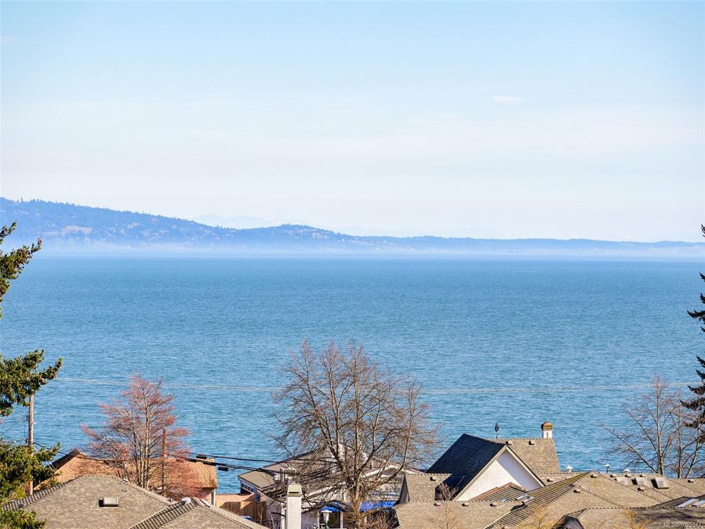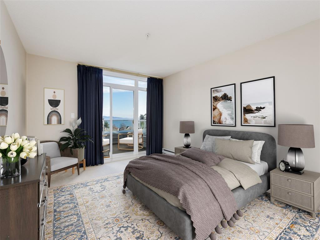 TOP FLOOR PENTHOUSE in the Heart of Cordova Bay Village offering commanding Views over Haro Strait to the San Juan Islands and majestic Mt. Baker! Fabulous 2 bedroom, 3 bath condo across from the ocean and steps to the BEACH, Matticks Farm, Golf, shops, biking and walking trails. Bright Open layout with abundance of natural light. Excellent seperation of bedroom each with their own ensuite and private balcony. Gas fireplace makes the living room warm and inviting. Spacious Primary with 5 pce ensuite and wa...