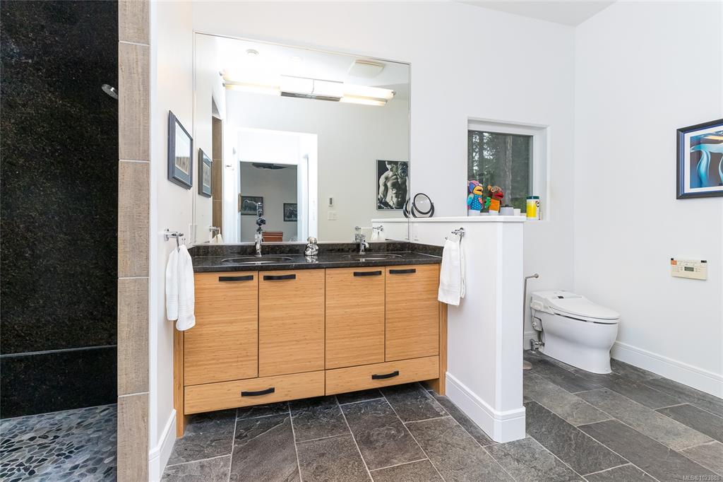 Welcome to this stunning & secluded home nestled in the heart of Aquilla Estates. Surrounded by mature trees & nature w/ breathtaking harbour & mountain views. This 5-acre property offers the perfect balance of peaceful country living & convenient access—just a short drive to both Ladysmith & Nanaimo. This modern custom home features a smart layout designed for easy main-level living. The spacious primary suite & a 2nd bedroom are on the main floor, while a third bedroom w/ ensuite & a private deck is locat...