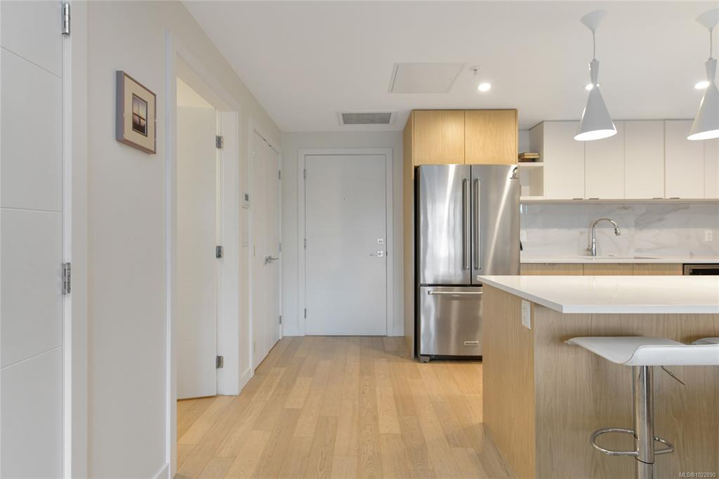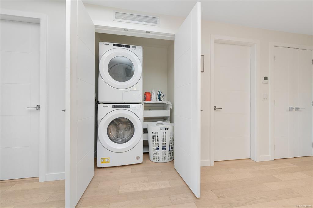 OCEAN & MOUNTAIN VIEWS! Experience Island living at THE HARO in prestigious CORDOVA BAY. This exclusive development offers 91 residences across three architecturally distinct buildings thoughtfully designed by Alan Lowe. This near-new, one-owner meticulously maintained condo offers spacious 2BD, 2BA + Den layout with ocean and mountain views, high-end finishes, hardwood floors, quartz counters, KitchenAid appliances, and modern upscale design. With year-round A/C, gas stove, EV charging option, underground ...