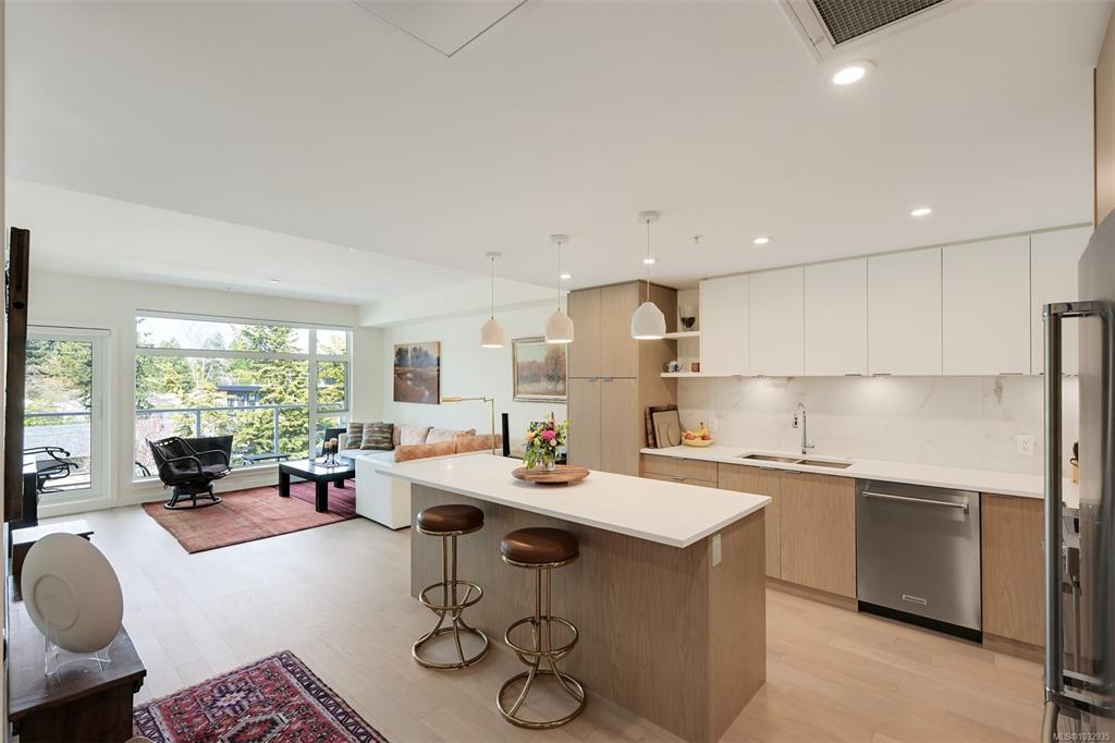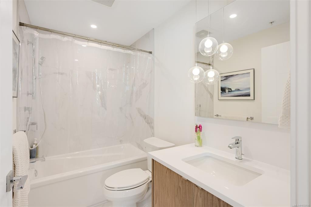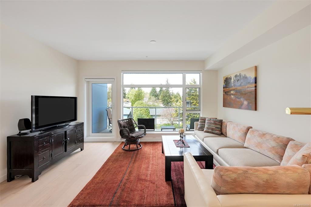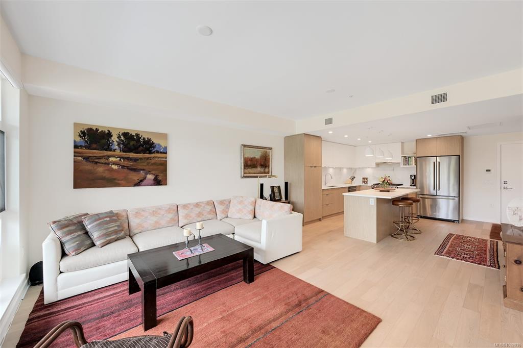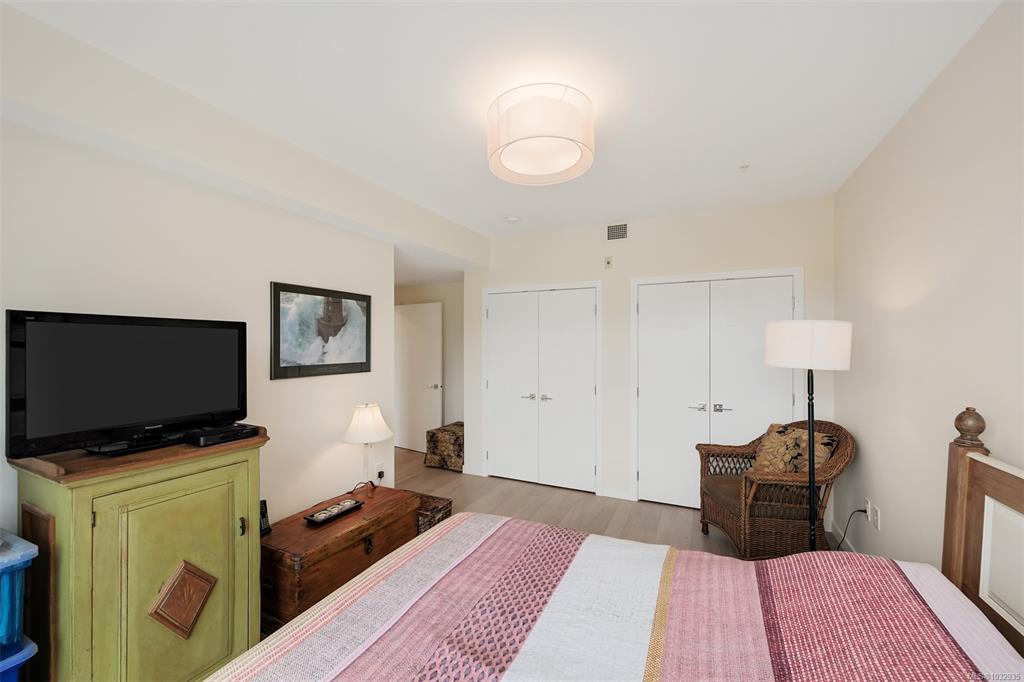 Enjoy seaside living at the Haro in sought after Cordova Bay! This beautiful bright modern 2 bedroom and 2 bathroom condo features high quality finishing throughout, including gorgeous hardwood flooring, an entertainment style kitchen with a large island, gas stove, quartz counters, stainless steel appliances, electric blinds, and heated tile flooring in the bathrooms. The spacious balcony off the living room offers lovely ocean views and room to relax or BBQ. There's secure underground parking with an EV c...