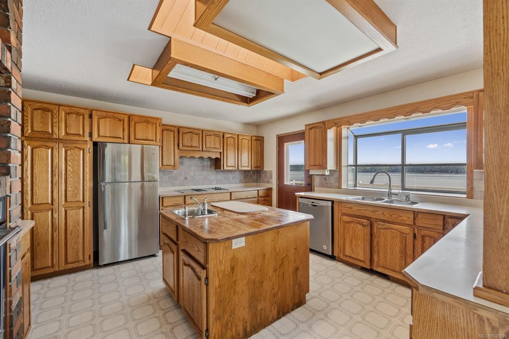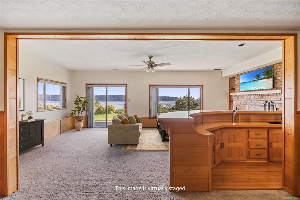 Custom built 1988 one owner only, Discovery Passage view home in one of Campbell River’s sought-after ocean-side areas, high-bank on a 0.6-acre lot w/ views to Quadra Island, Cape Mudge Light & Coast Mtns. Ocean is directly below across Old Island Hwy w/ marine traffic & cruise ships visible from ocean-facing windows & decks. Over 5,200 sq ft on 2 levels w/ approx 4,396 sq ft finished, offering 6 Bdrm & 4 Bath in an executive-style layout for large households, multi-gen living or home office use. Main lvl l...
