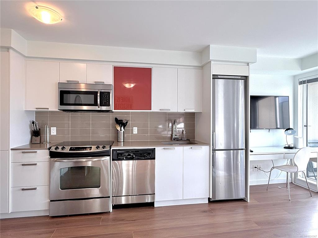 OPEN HOUSE SAT Feb 7th 2-4PM. This 1 bed, 1 bath condo at Union offers 523 sq ft of modern space in the heart of funky China Town. Completely renovated in 2024, it shows like NEW. Designer finishes, stainless steel appliances, new flooring, paint, drywall, the works! There is in-suite laundry, extra storage, and a south-facing patio on the quiet side of the building overlooking the inner courtyard. Pets of all shapes and sizes welcome, BBQs allowed, plus hot water is included in the strata fee. Downtown liv...
