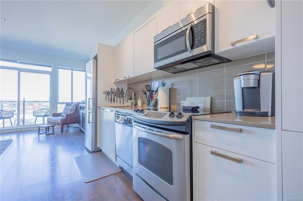 Top floor condo in the Union Building! This unit features unobstructed views of the city, mountains, and Victoria's Inner harbour, all from your private balcony. 9ft ceilings, with floor to ceiling north-facing windows bring in tons of natural light while not overheating the space. Quartz countertops, stainless steel appliances, and in-suite laundry are just a few of the perks of this 2014-build. Bring your furry family members! The building is pet-friendly with no size or number limits. Parking? Yes! One p...