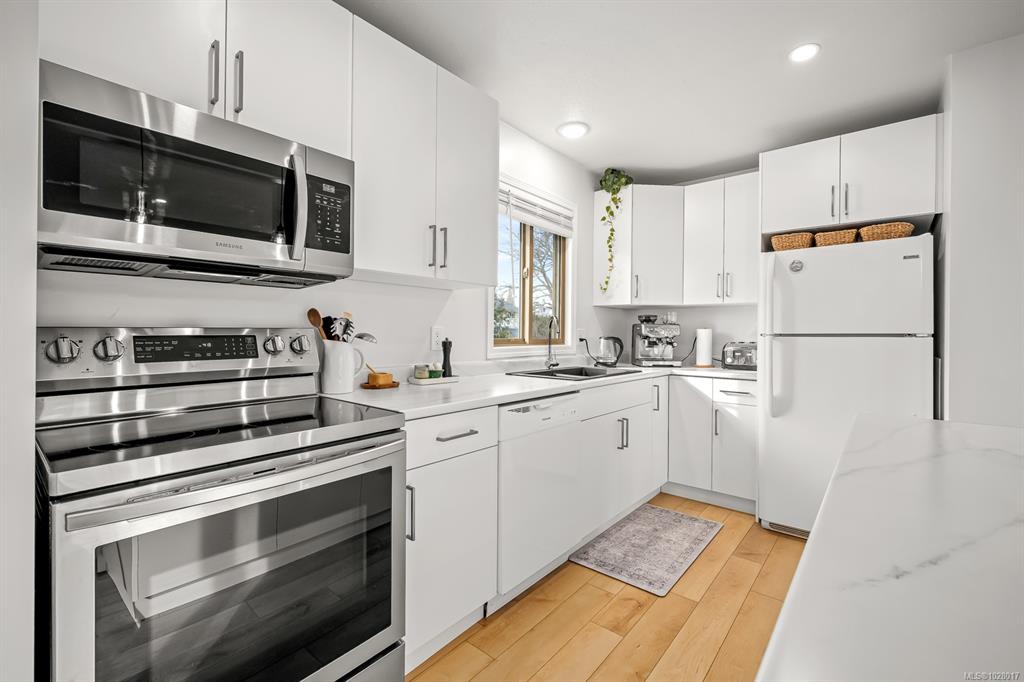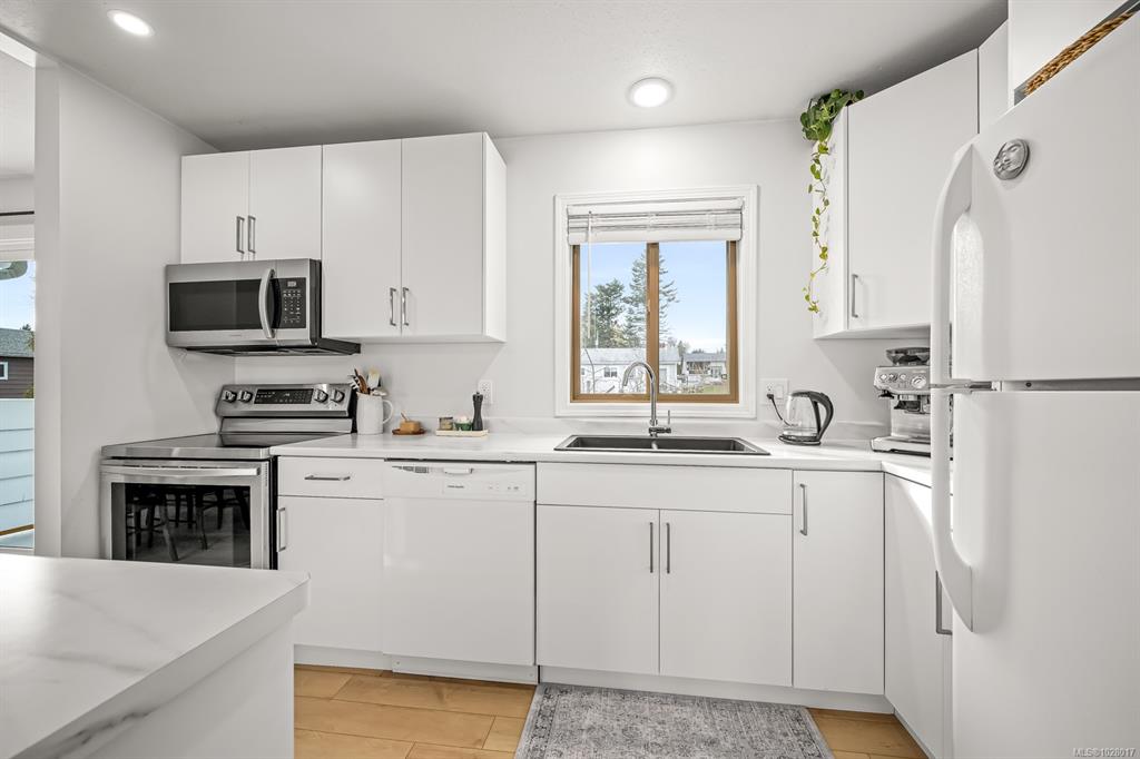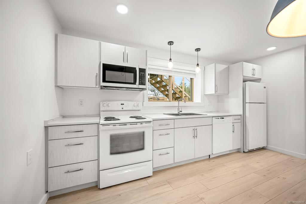 A COMOX MUST-SEE: This fully renovated home with a self-contained suite in the heart of Comox, offers modern living with an excellent mortgage-helper. The bright upper level features a stunning custom kitchen with stainless appliances, modern cabinetry and fixtures, updated flooring, with an open concept design perfect for entertaining. The lower level offers a fully finished two bedroom suite with another custom kitchen, refreshed bathroom, separate laundry, and private living space—ideal for extended fami...