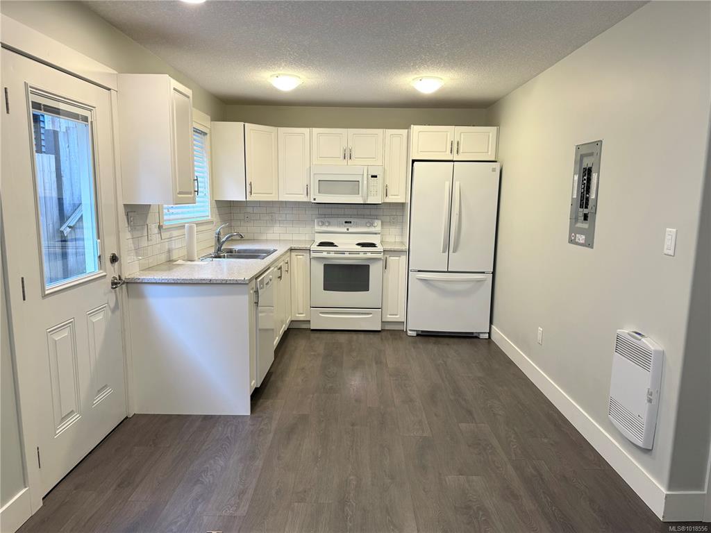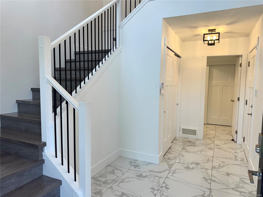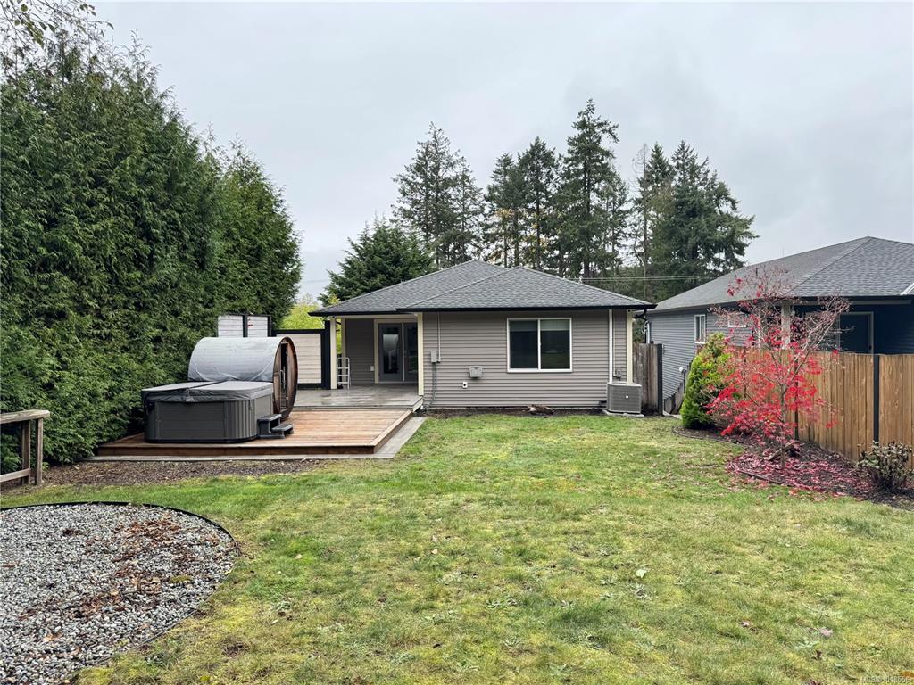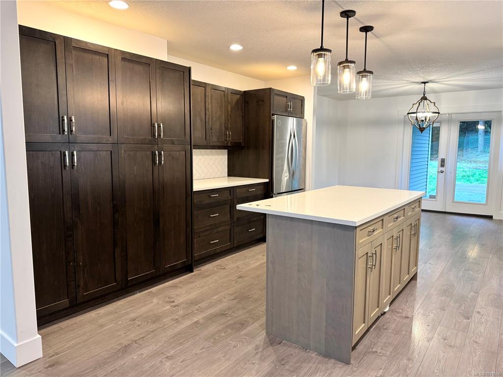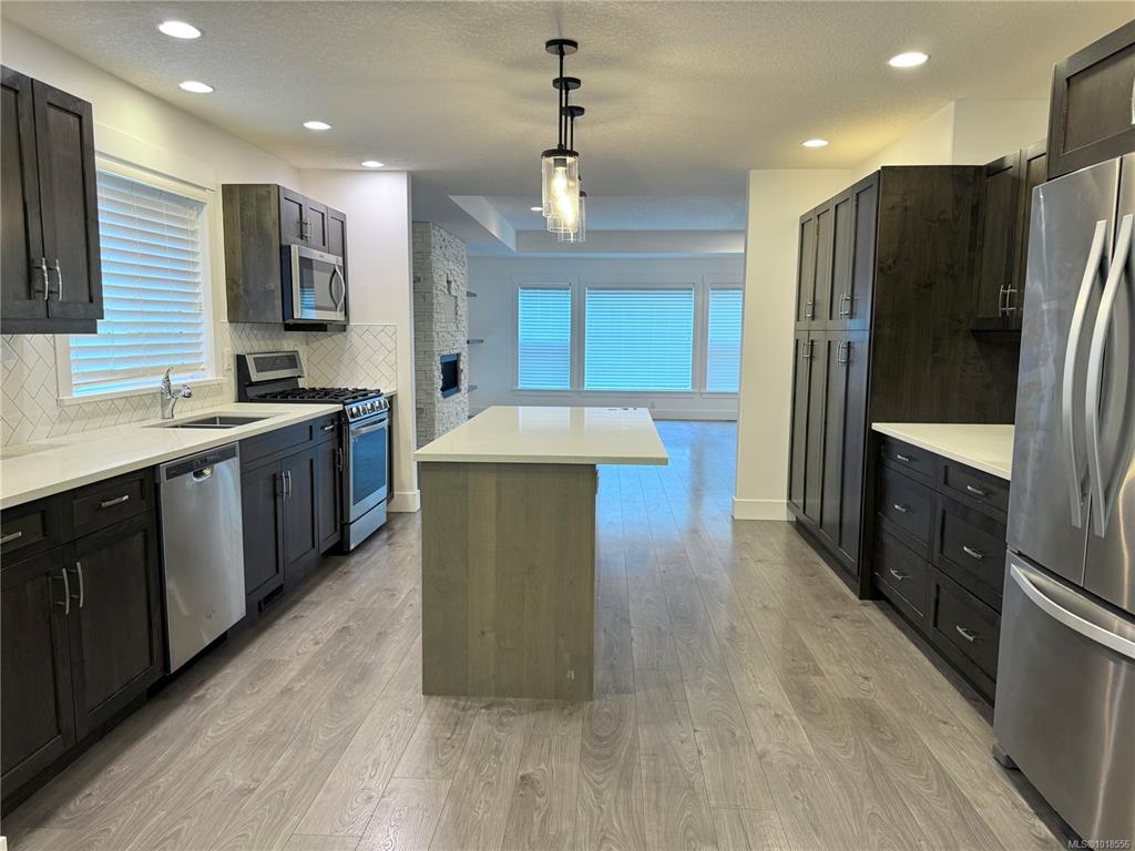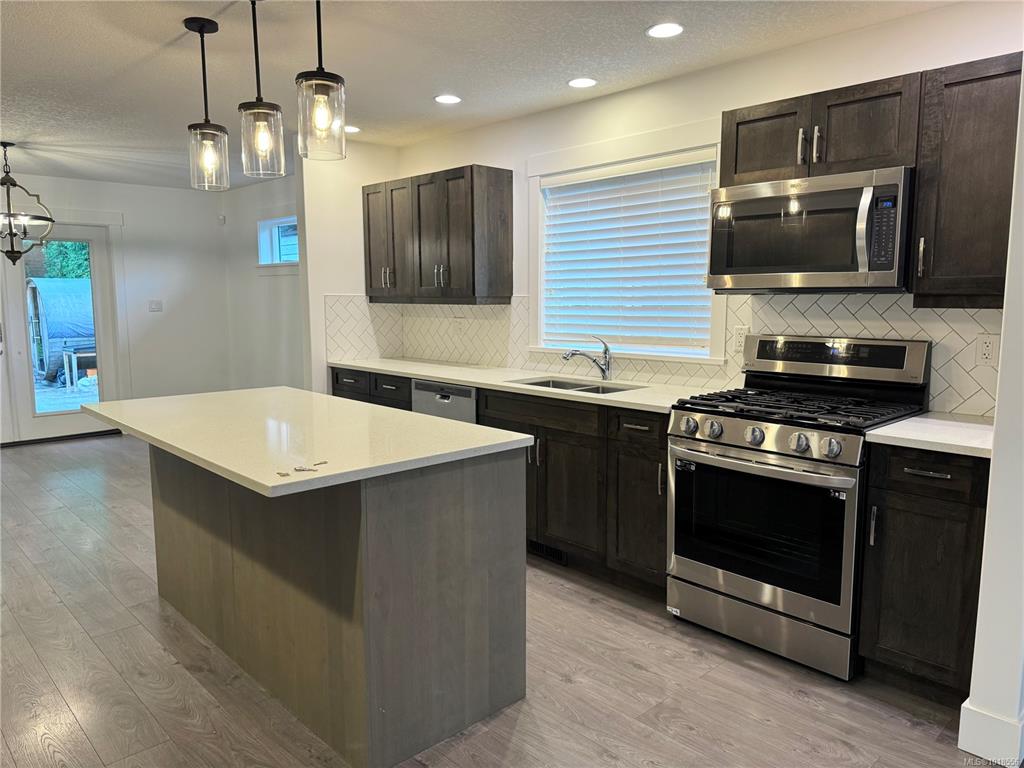 5 bed, 3 bath home with a 2 bedroom legal suite in a wonderful North Nanaimo location. Main Level has a beautiful kitchen with large island and quartz counter tops, living room with natural gas fireplace and a dining room with french doors that open up onto the back deck leading to the outdoor living space. The Primary bedroom has 3 pc ensuite with heated floors & walk-in closet. Also, 2 more bedrooms & 4 pc main bathroom are on main level. Southern exposed deck has gas hook-up for BBQ, hot tub, sauna, a la...