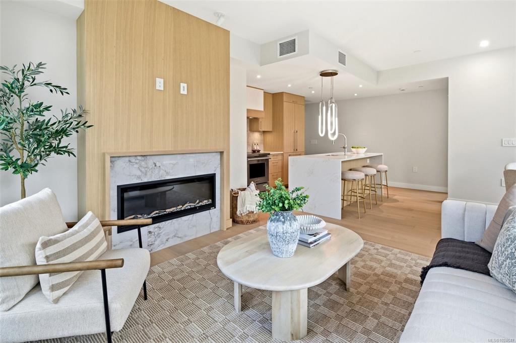 Set in the heart of Cordova Bay, Unit 306 at Tiller & Grace offers an opportunity to live just steps from the beach & Mattick’s Farm. This 2-bedroom, 2-bathroom residence by GT Mann is thoughtfully designed to maximize space, natural light, and everyday comfort. The corner layout creates a bright, airy feel, with an open living area that flows seamlessly into a well-appointed kitchen featuring WOLF induction cooking, a panelled Fisher & Paykel fridge/freezer, and Fisher & Paykel drawer dishwashers—a premium...
