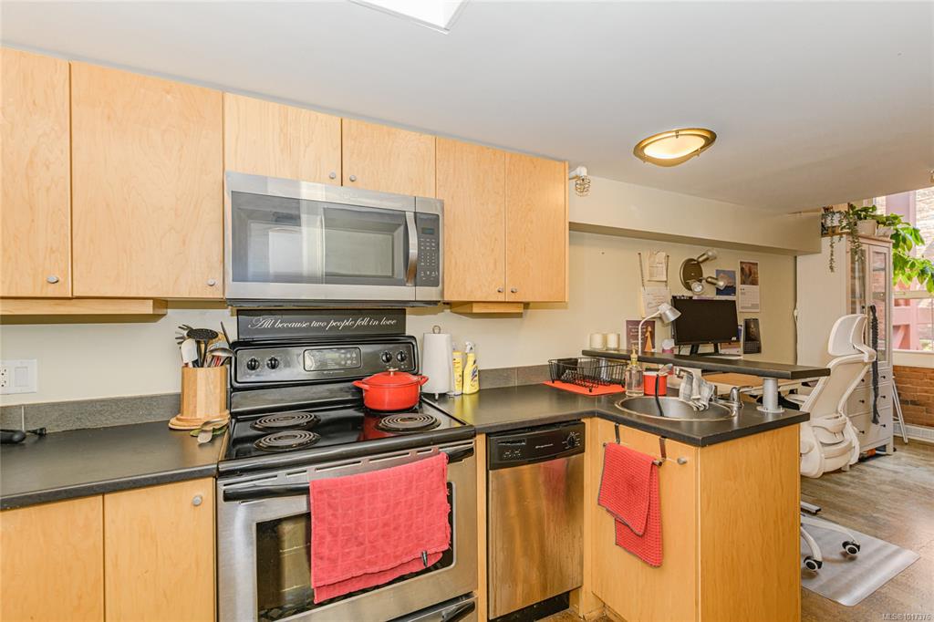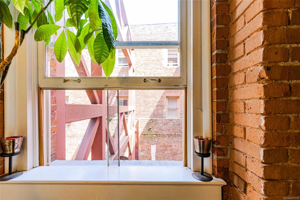 Welcome to The Leiser, a landmark brick building in the heart of Downtown Victoria. Originally built in 1896, this iconic structure was transformed in 2008, reimagined into stylish loft-style condos that beautifully fuse architectural character with contemporary finishes. The suite boasts nearly 14-foot ceilings adorned with a grand original window, framed in lovingly restored wood casings and meticulously restored brickwork. Inside, discover a chicly designed living space, in-suite laundry, and a modern ki...